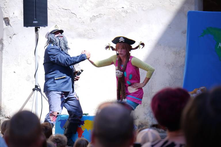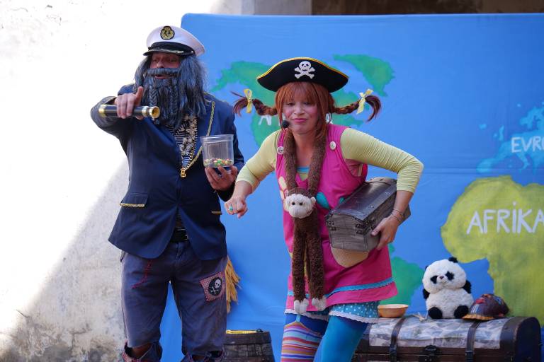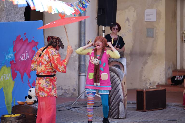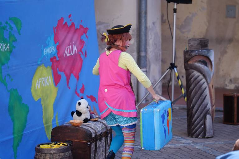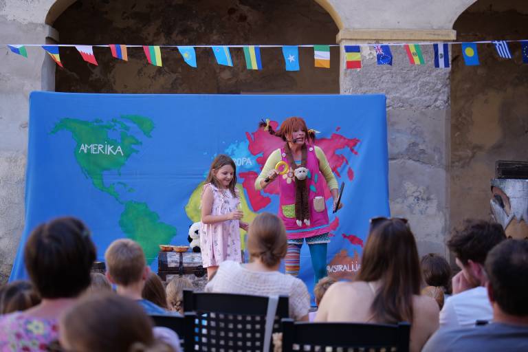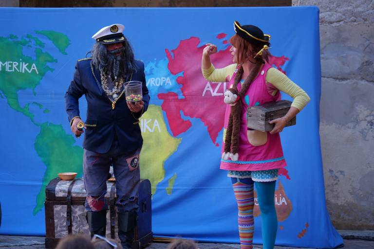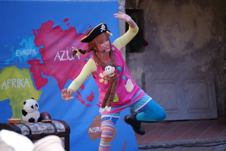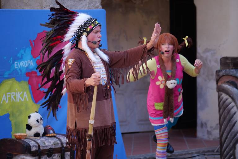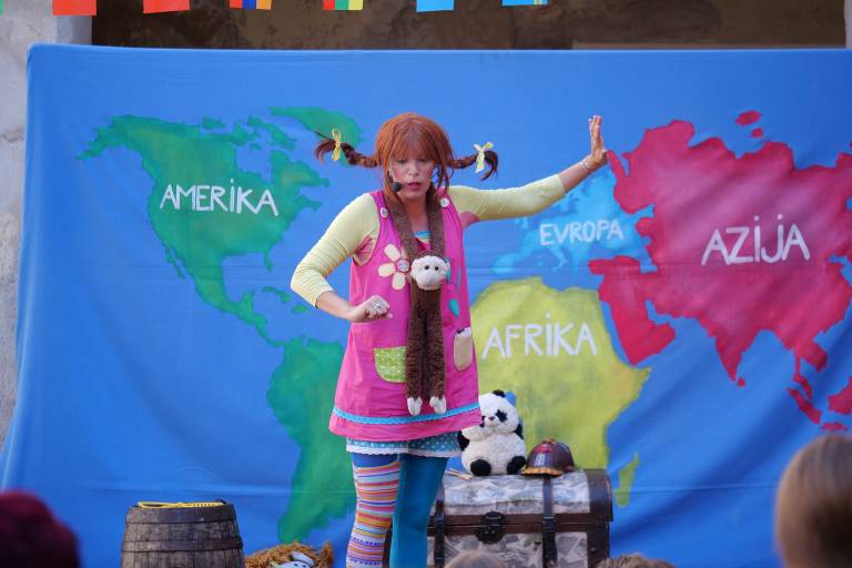 Grajsko dvorišče v Murski Soboti je danes dopoldne znova oživelo ob otroškem vrvežu in smehu. V okviru programa Soboškega poletja je oder zavzela priljubljena junakinja otroške domišljije Pika Nogavička, tokrat v predstavi z naslovom Pika Nogavička potuje.