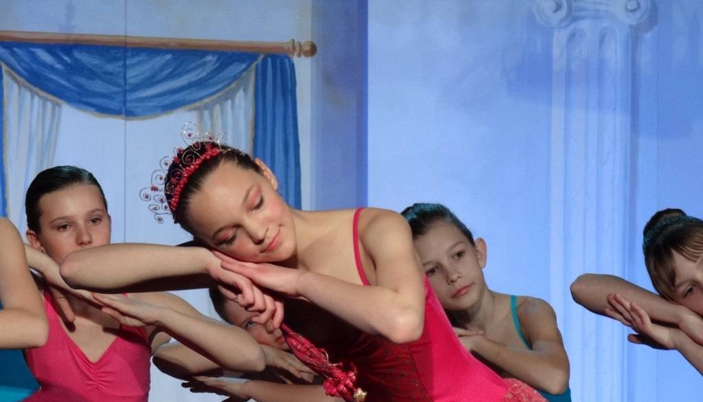 Več kot štirideset mladih baletk je zavzelo oder in očaralo občinstvo s prikupnimi, a dovršenimi koreografijami, v katerih je Nuša Krajnčan prevzela glavno vlogo Aurore, Mia Belak je zaplesala zlobno vil Carabosse, Rebeka Kerčmar pa dobro vilo Jorgovano. Ker v baletnem oddelku glasbene šole trenutno še ne premorejo moških baletnih plesalcev, sta kot gosta nastopila Dario Dogša v vlogi kralja in Jakob Korošec kot princ. Ob tej priložnosti se je ravnatelj ljutomerske glasbene šole, Stanislav Lašič, zahvalil vsem mladim baletkam, hkrati pa izrazil željo, da v Ljutomeru v prihodnje z veseljem pričakujejo tudi moške baletne plesalce.