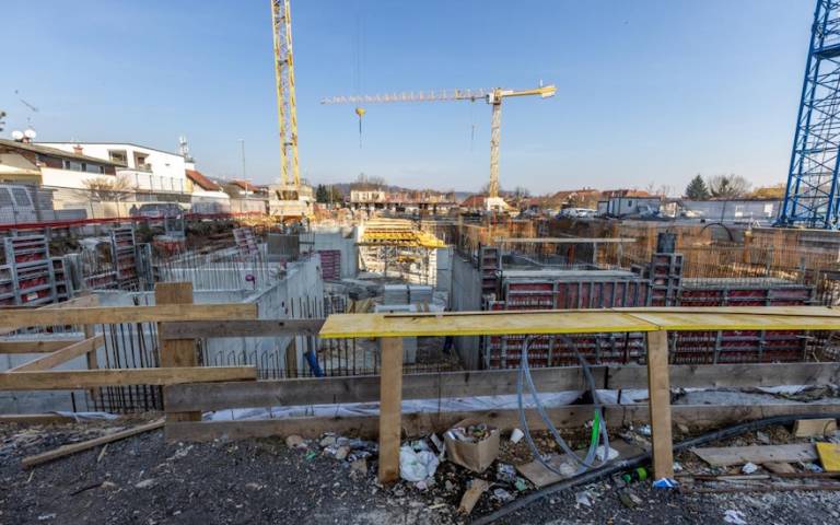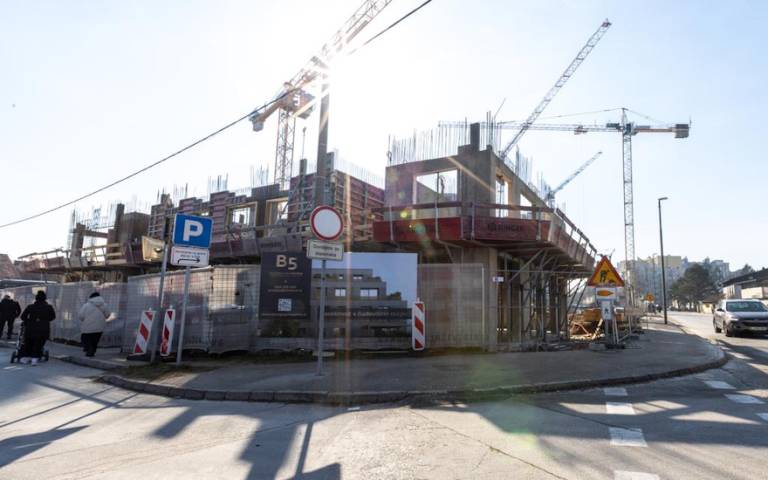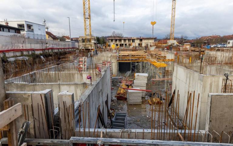 Dela na projektu Bežigrajska petka potekajo skladno s pričakovanji. V februarju so že izvedli prve stene pritličja objekta E5 ter ploščo 1. nadstropja. Gradnja napreduje hitro in učinkovito, kar pomeni, da bo soseska vseljiva maja 2026.