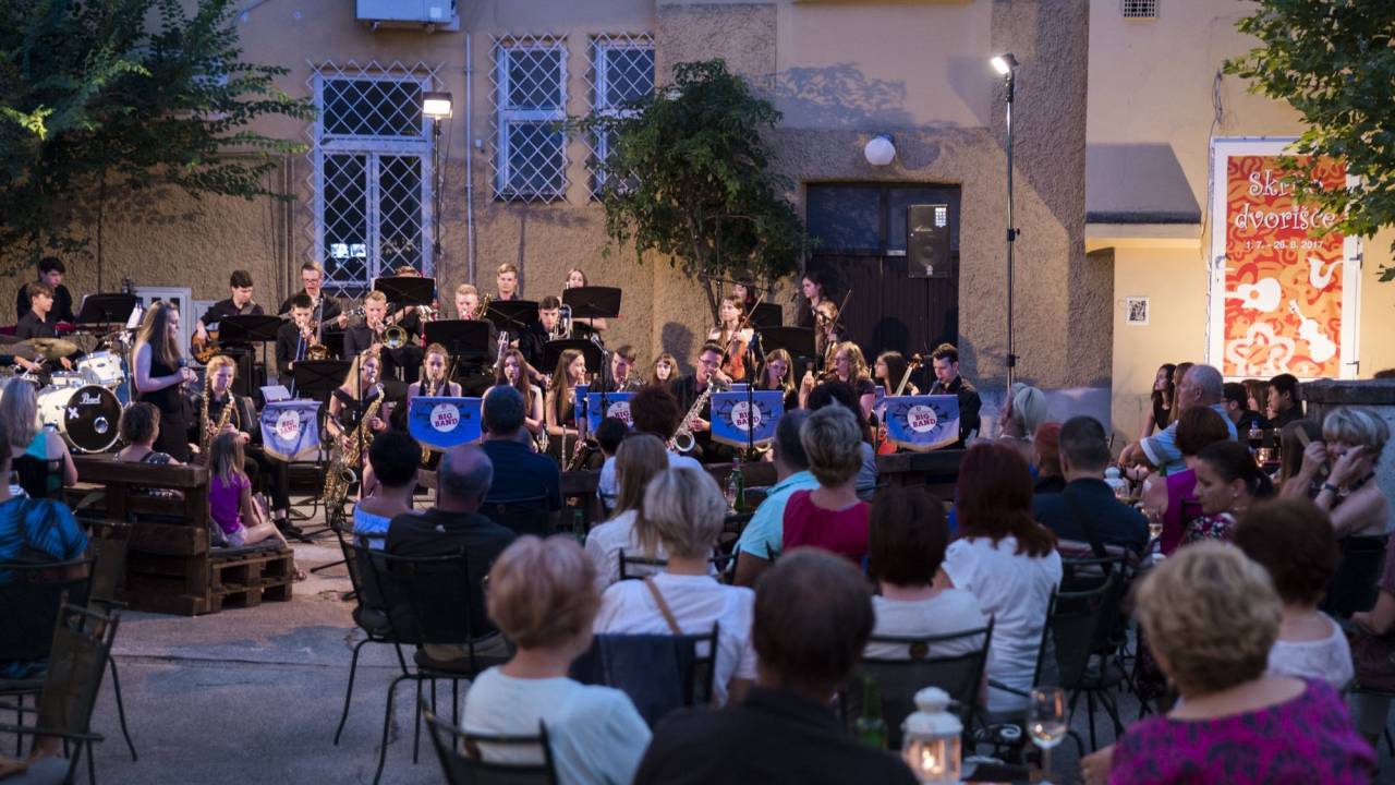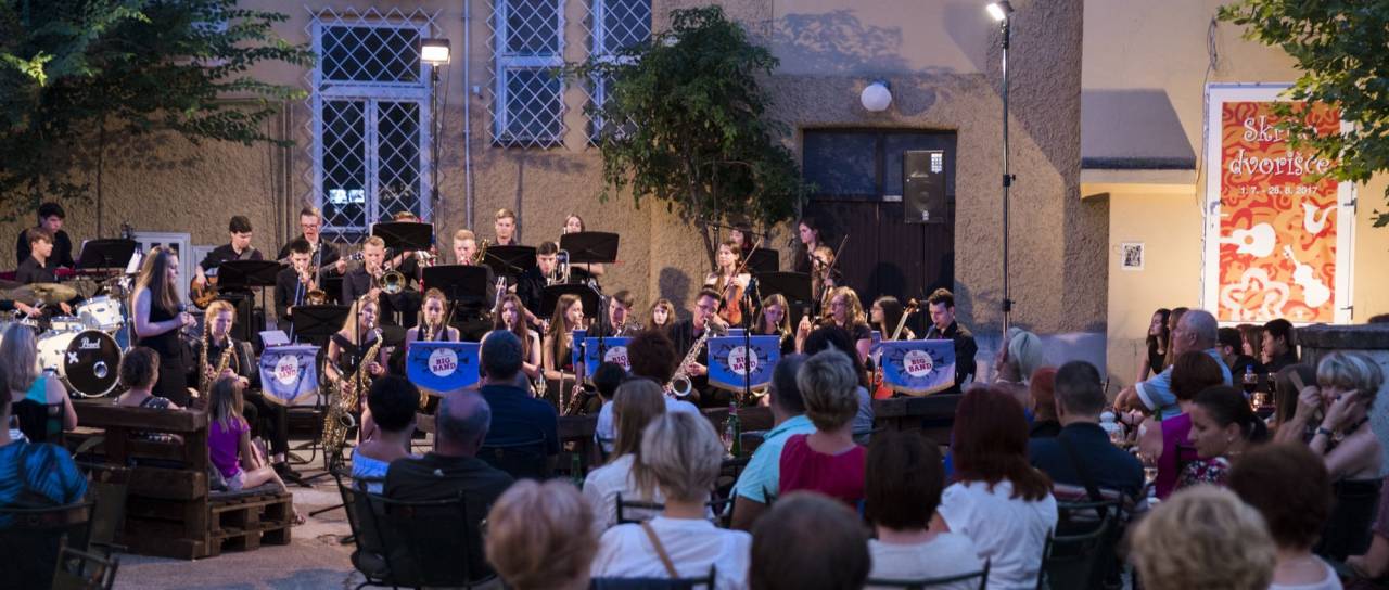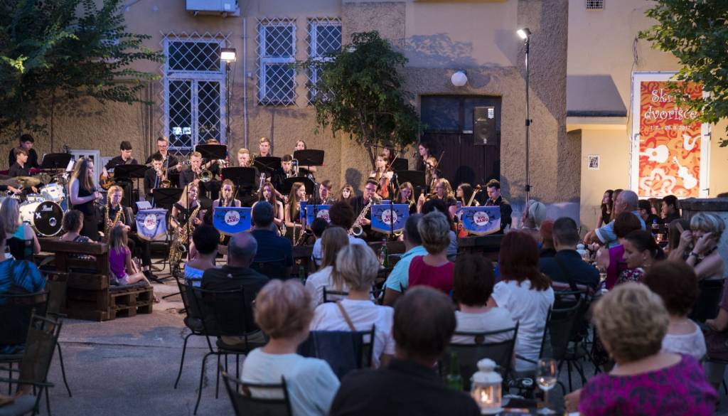 Na Skritem dvorišču so včeraj navzoče s svojim nastopom navdušili člani ansambla Brentwood School Big Band iz Velike Britanije.