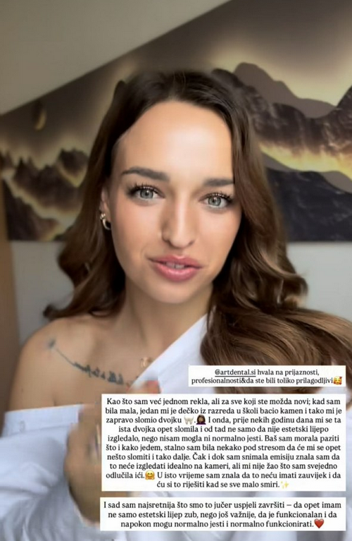 »Zdaj sem najsrečnejša, da smo to uredili, da imam spet ne le lep, ampak predvsem funkcionalen zob in da lahko normalno jem in živim,« je povedala.