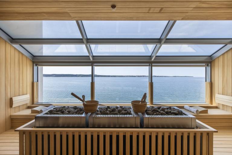 Med sproščanjem in nego vas bodo, poleg istrskih zgodb, iz panoramskih savn spremljali tudi edinstveni razgledi na neskončno modrina morja, pričakujemo pa vas tudi s solno sobo in edinstvenim istrskim hamamom.