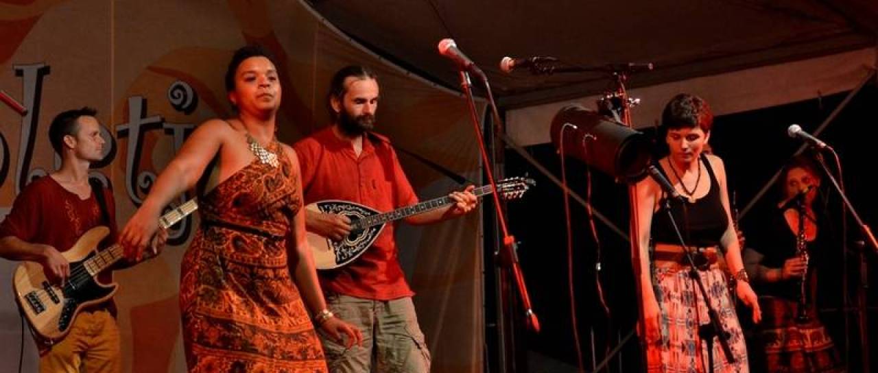 Na petkovem Soboškem poletju nastopila francoska multikulturna skupina Tribal Veda.