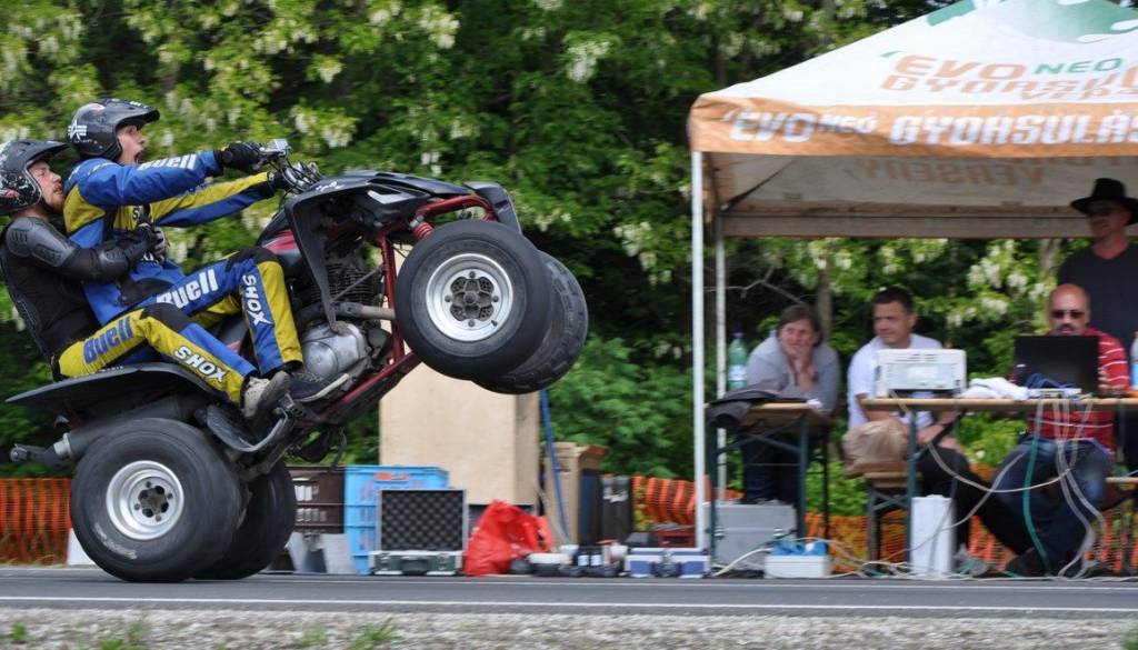 Tudi danes je bilo na Drag Race v Murski Soboti zelo zanimivo in pestro, saj se je predstavilo zelo veliko jeklenih konjičkov in motornih koles. Zelo zanimiva stuntera iz Madžarske sta predstavila obilo trikov, na koncu pa še prikazala vožnjo z dragsterjem, ki ima nekaj čez 2400 konjev.