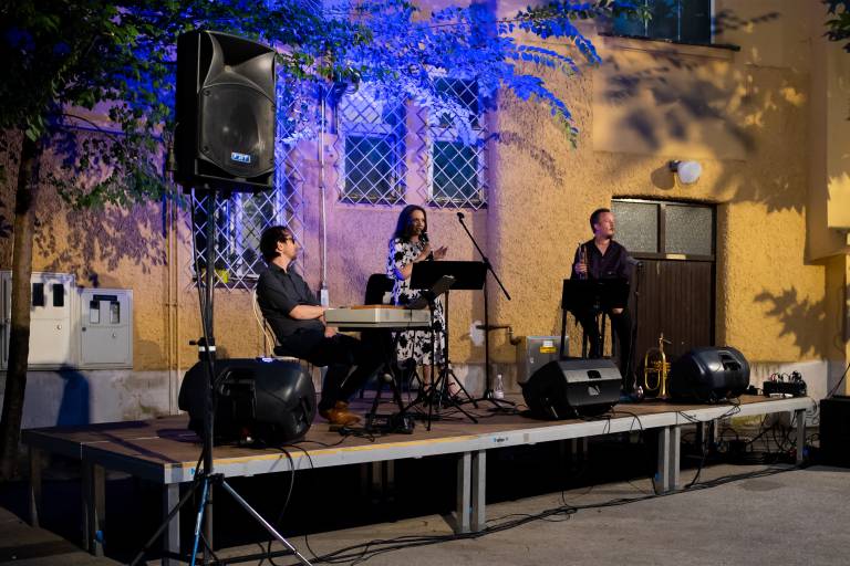 Vokal Ane Bezjak, Marko Črnčec na klavirju, Tomaž Gajšt na trobenti in krilovki. Popolna kombinacija. Ana Bezjak je mariborska jazzovska pevka in pedagoginja. Širši javnosti je poznana kot pevka zasedbe Papir in gostujoča pevka tangovskih zasedb Quintet Piazzolleky in Tango Compas.