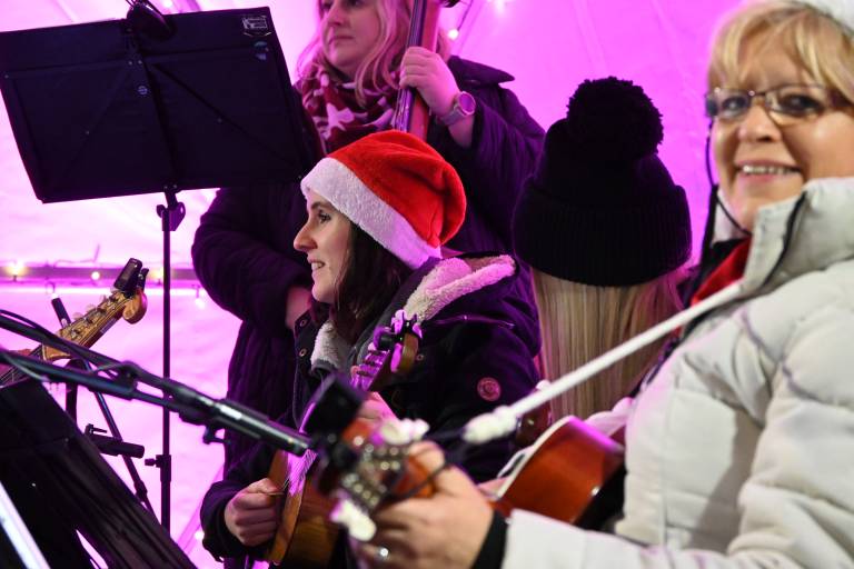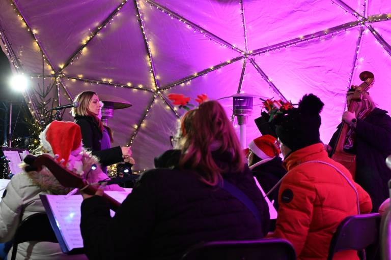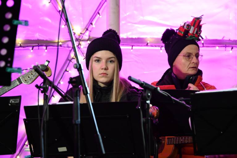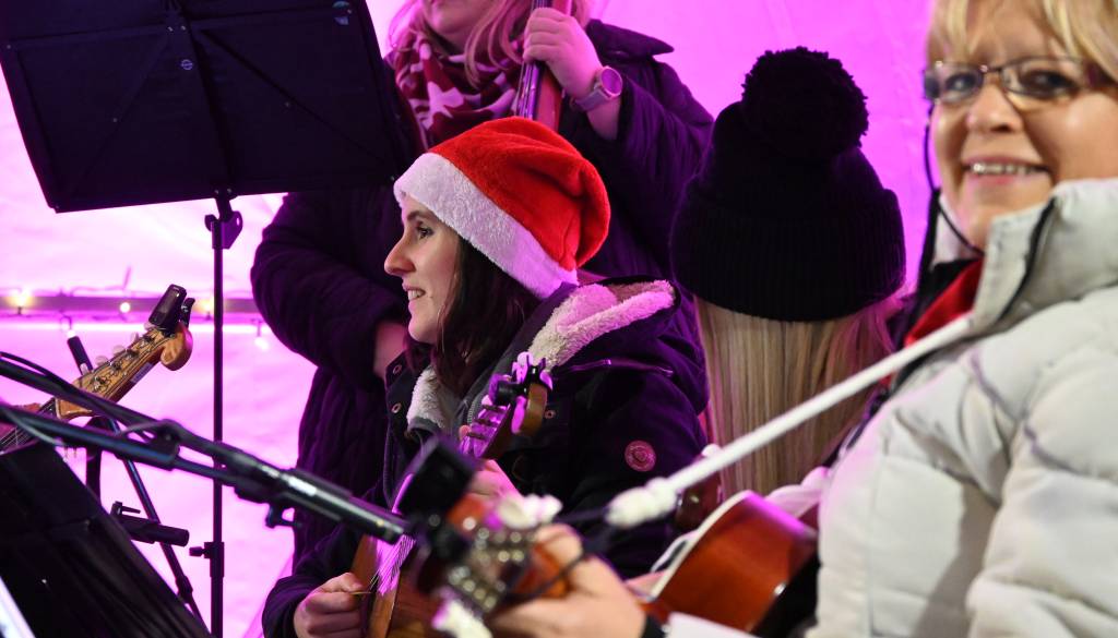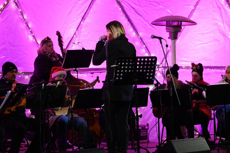 Pomurski tamburaški orkester navdušil ob drsališču.