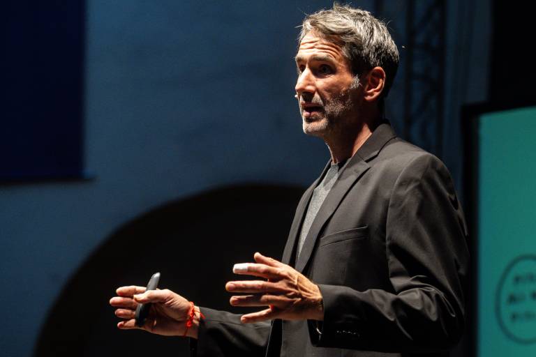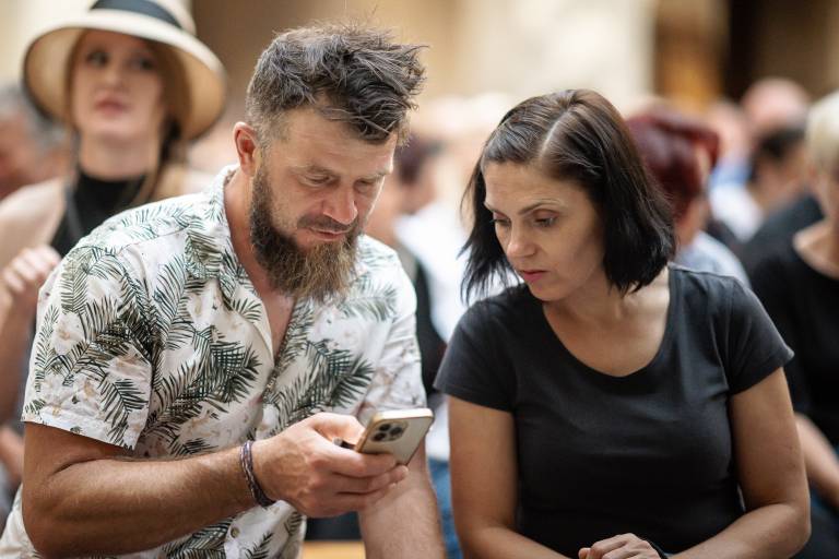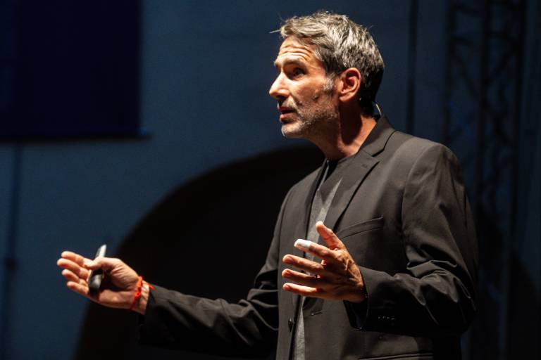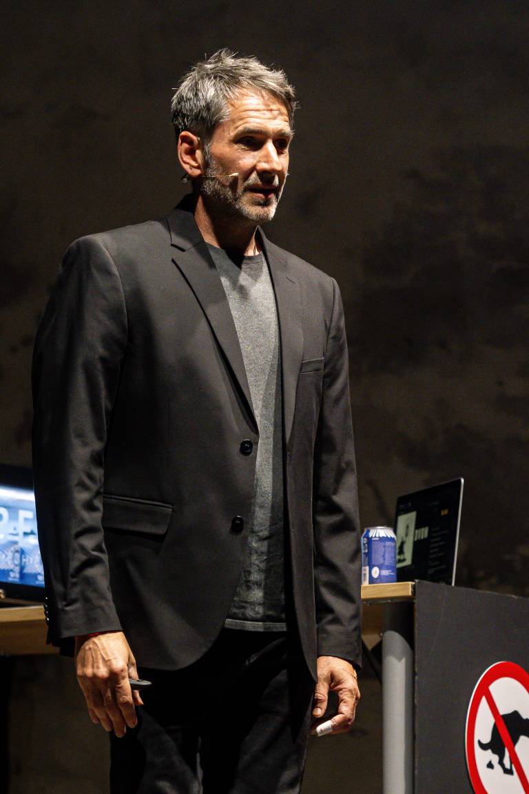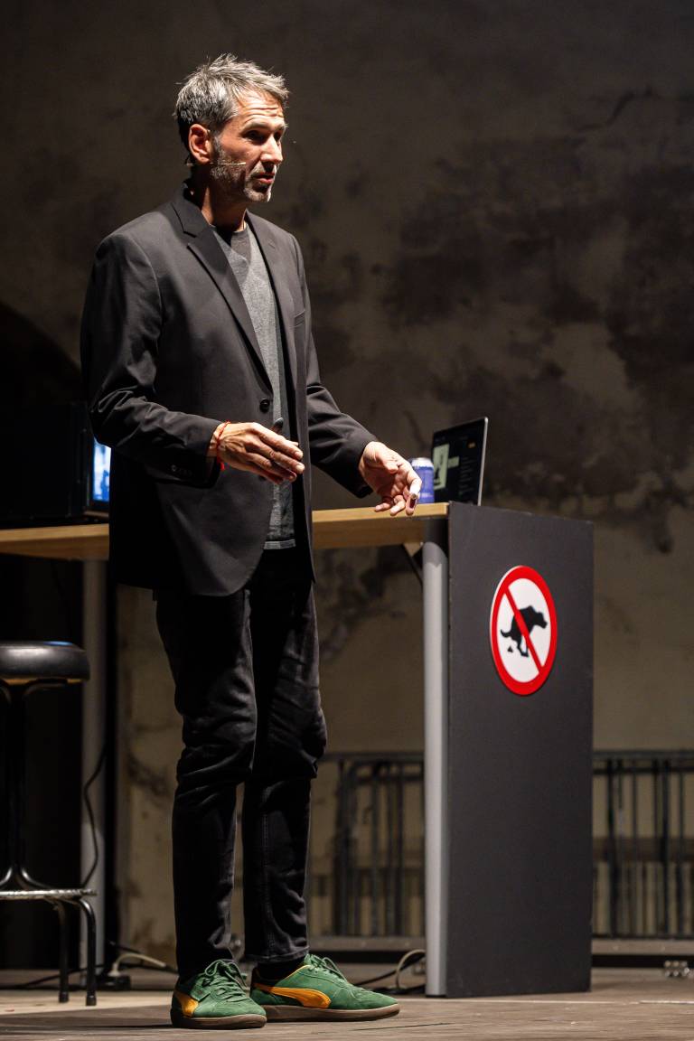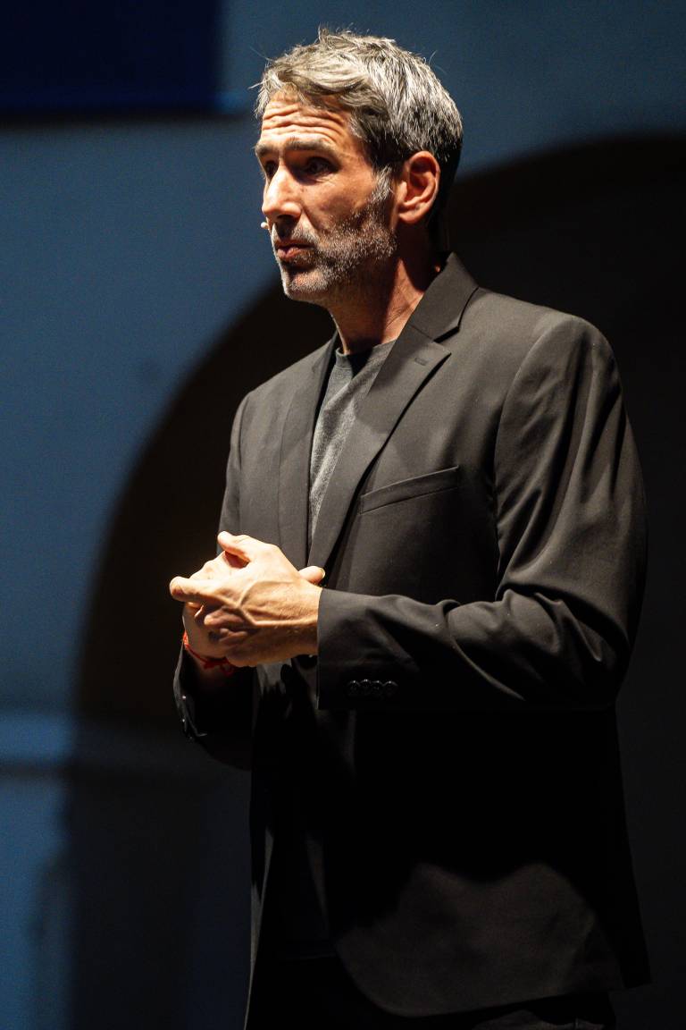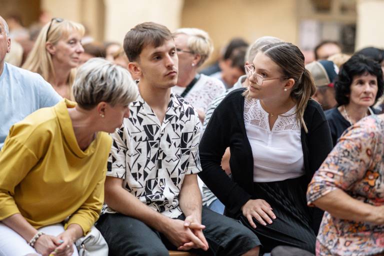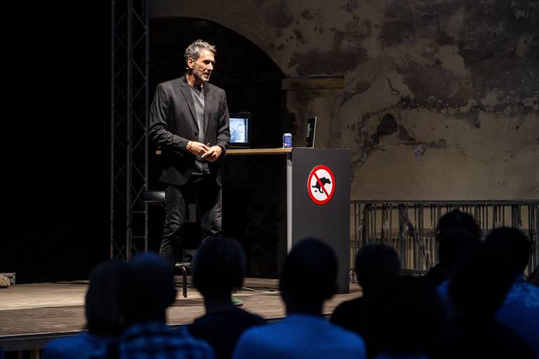 Miha Šalehar je z monokomedijo na grajskem dvorišču poskrbel za smeh vseh navzočih.
