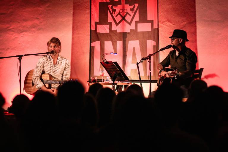 Seveda pa nadvse zabavnega in pestrega dne še ni bilo konec, saj so za vse glasboljube pripravili poslastico: ena na ena sta se udarila rokerja, ki prav gotovo ne potrebujeta posebne predstavitve ‒ kitarske moči sta namreč merila Tomi Meglič in Miha Guštin.