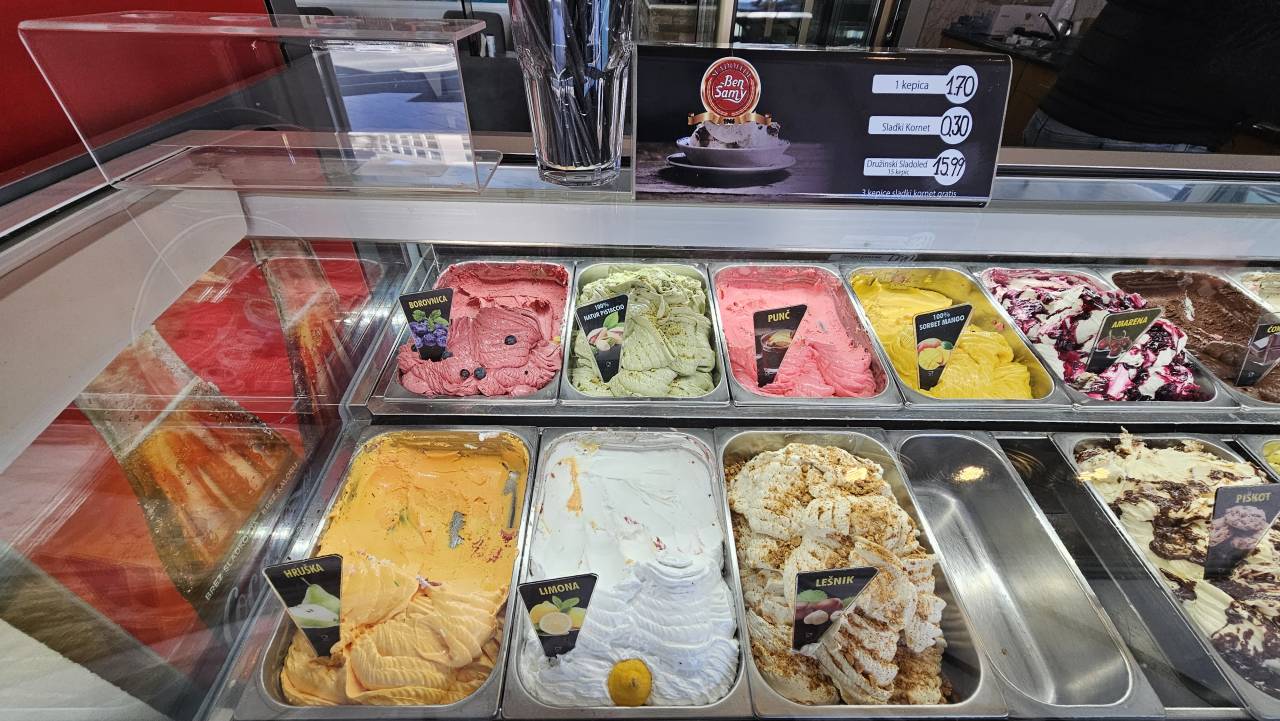 Trenutno pa v slaščičarni Ben Samy ponujajo sladolede kot so 100-odstotno naravna pistacija, sorbete z okusom kot so mango, črni ribez in bezeg. Na voljo pa so tudi korneti z okusom čokolada - malina in lešnikovimi posipi.