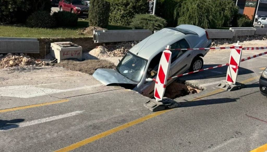 V Šibeniku je prišlo do nesreče, v kateri je osebni avtomobil padel v veliko luknjo na vozišču pri trgovskem centru poroča portal Morski HR.