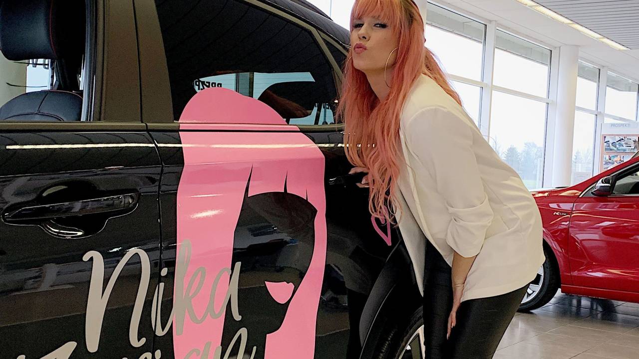 Kot je razvidno iz fotografij, je Nikin nov avtomobil ravno tako barvit in prepoznaven, kot je pevka sama. Zaželimo ji torej lahko le še varno vožnjo.