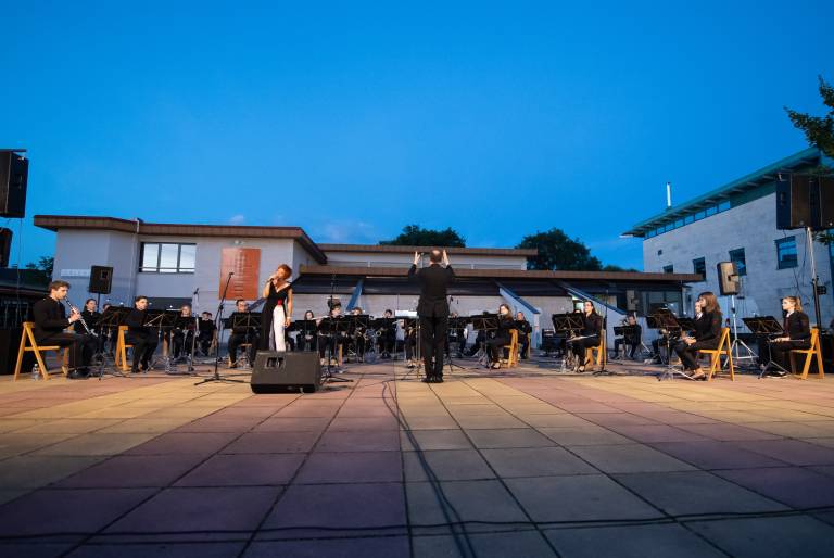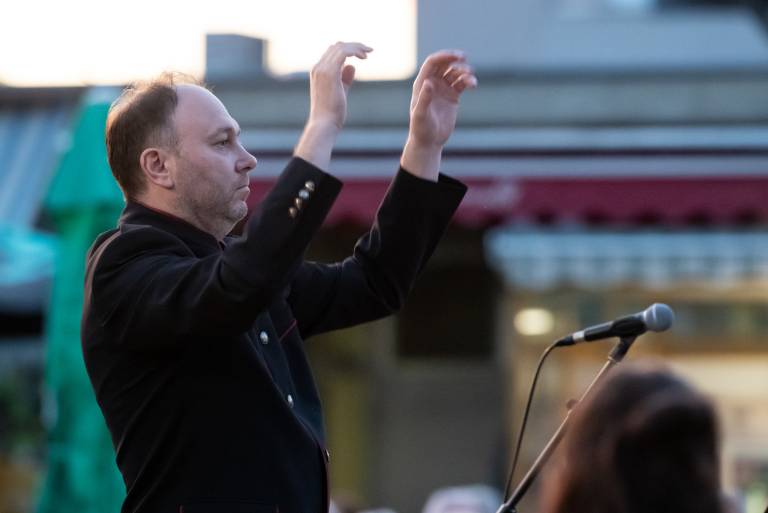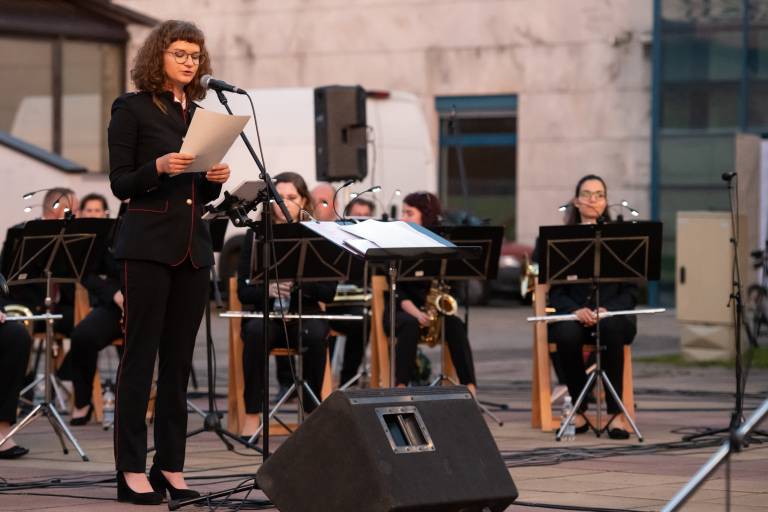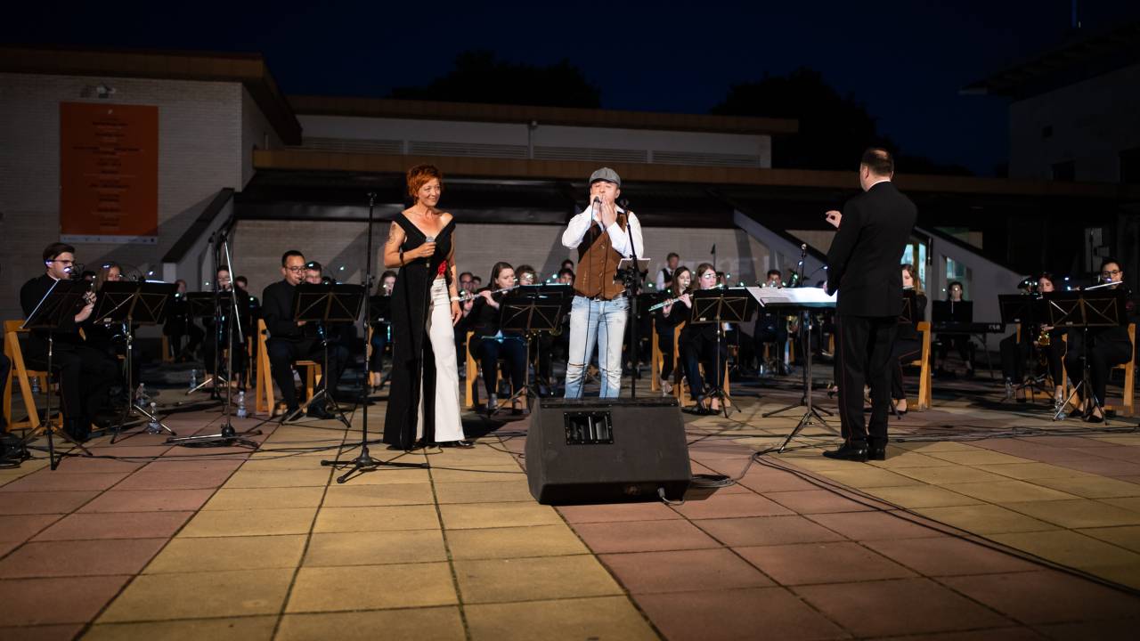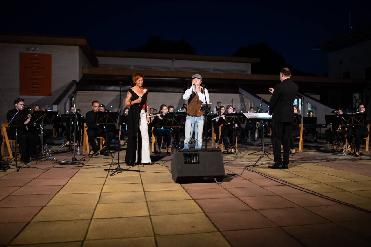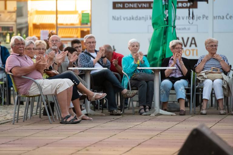 Včeraj so tako na Trgu kulture zazvenele priredbe svetovnih uspešnic, slovenskih popevk in tudi kakšna koračnica. Koncert so plesno popestrile članice Društva prekmurskih mažoretk Bakovci, za piko na i pa se jim je na odru pridružila znana prekmurska pevka Moira, ki je pestro glasbeno pot začela pred 37 leti.