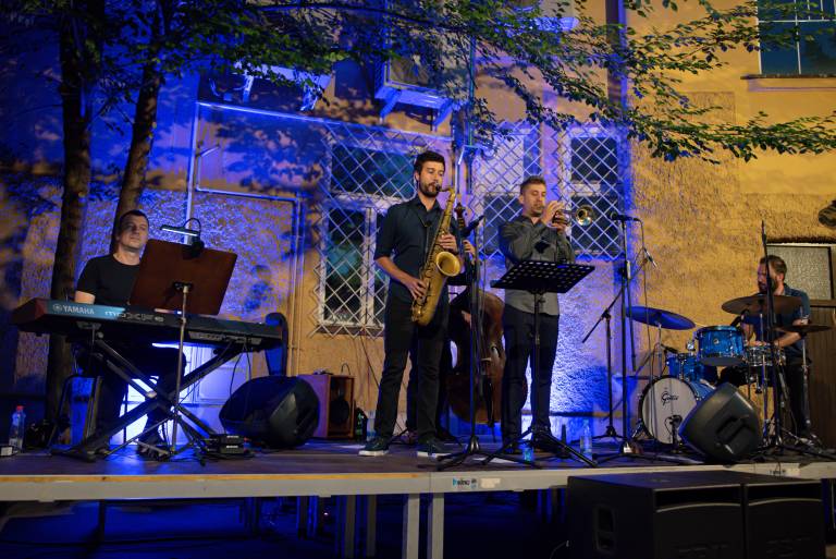 Zasedba MD Project je z jazzovskimi ritmi odprla novo sezono Skritega dvorišča, kjer se bodo vsako soboto v juliju in avgustu odvijali koncerti številnih žanrov.