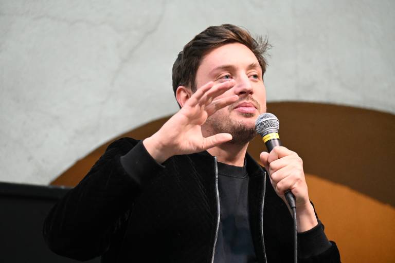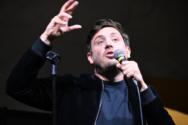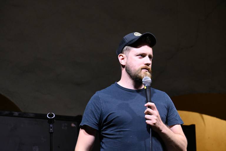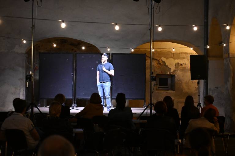 Tin Vodopivec, znan po svojem duhovitem in pronicljivem humorju, je občinstvo navdušil s svojimi izvirnimi šalami in zgodbami.