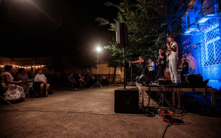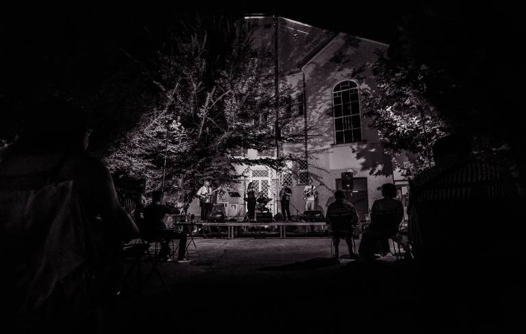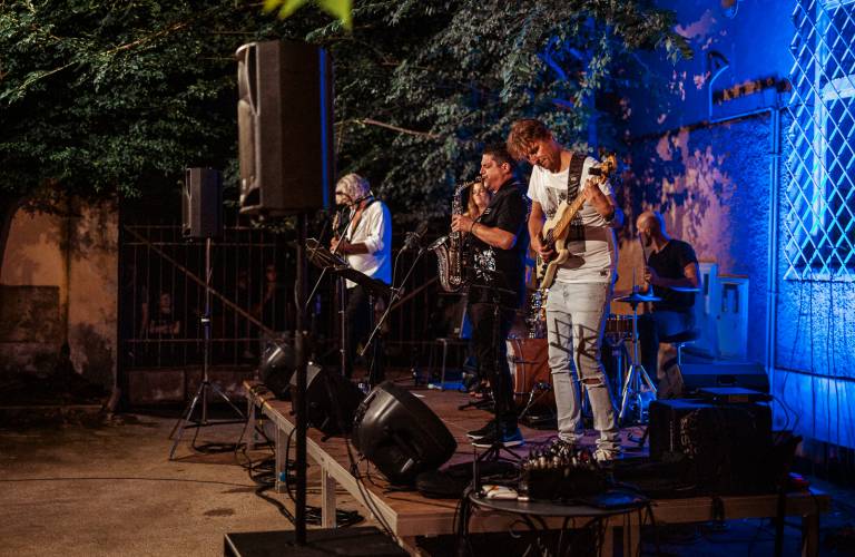 Na dvorišču Hranilnice prekmurskih dobrot je včeraj obiskovalce začarala skupina Fake Orchestra.