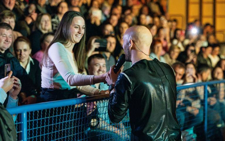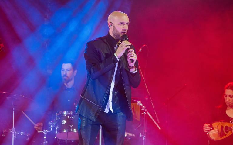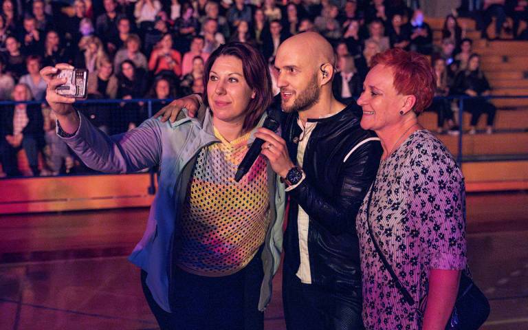 Priljubljeni dalmatinski pevec Marko Škugor je sinoči poskrbel za nepozaben glasbeni večer v telovadnici Osnovne šole III Murska Sobota.