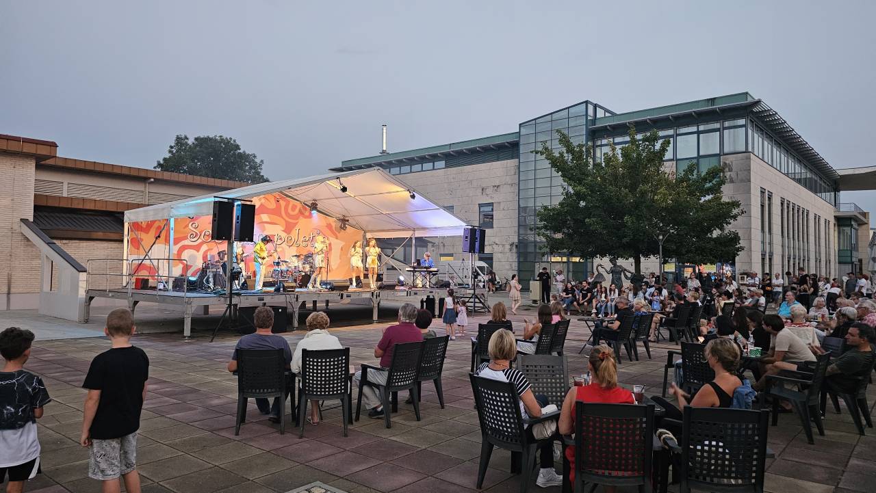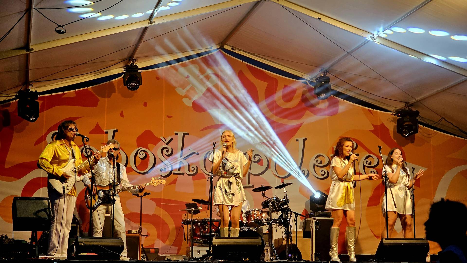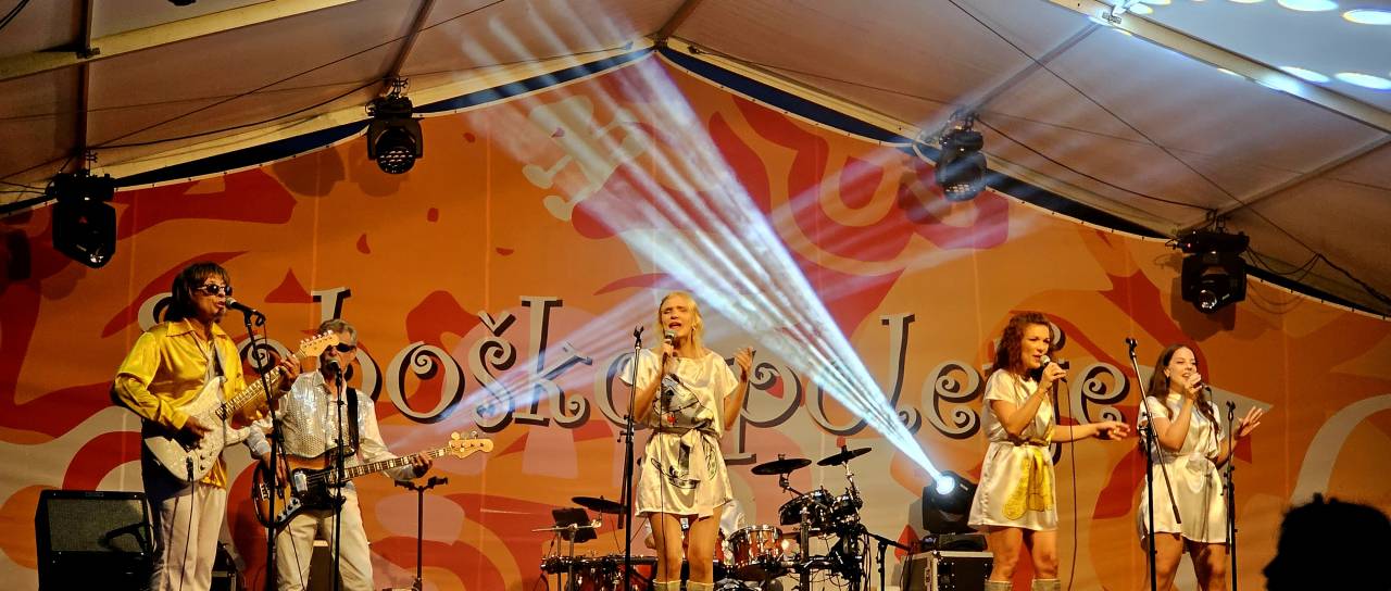 S pisanimi kostumi, kakovostno glasbeno izvedbo, vznemirljivo koreografijo in s kančkom humorja so obiskovalce popeljali v čas disko krogel in svetlečih oblačil in prinesli duh ABBE na Trg kulture.
