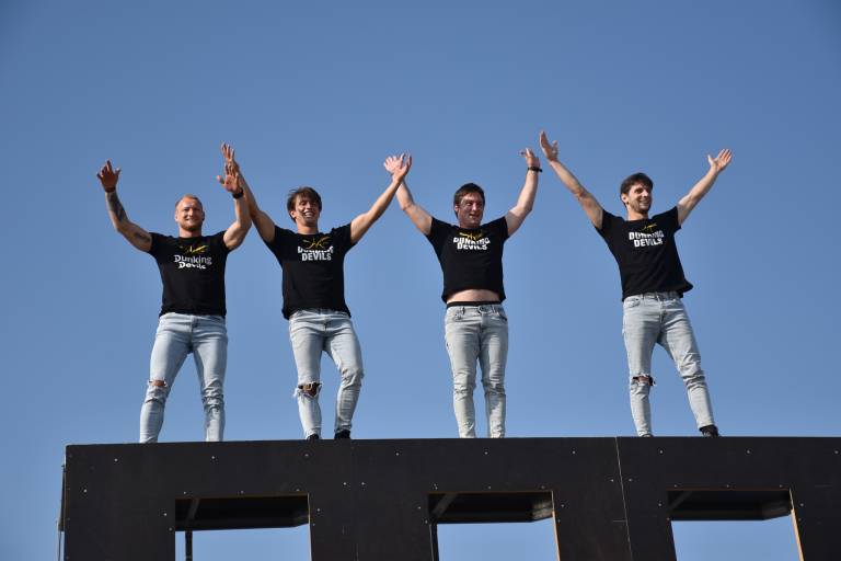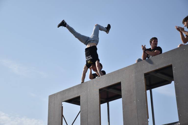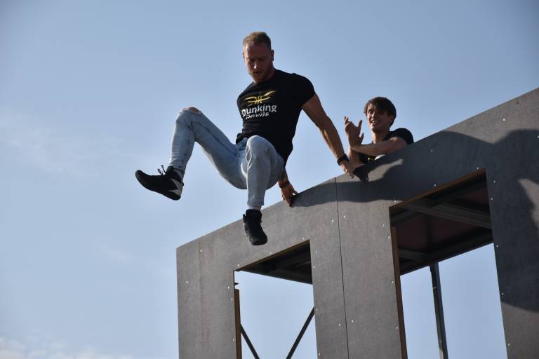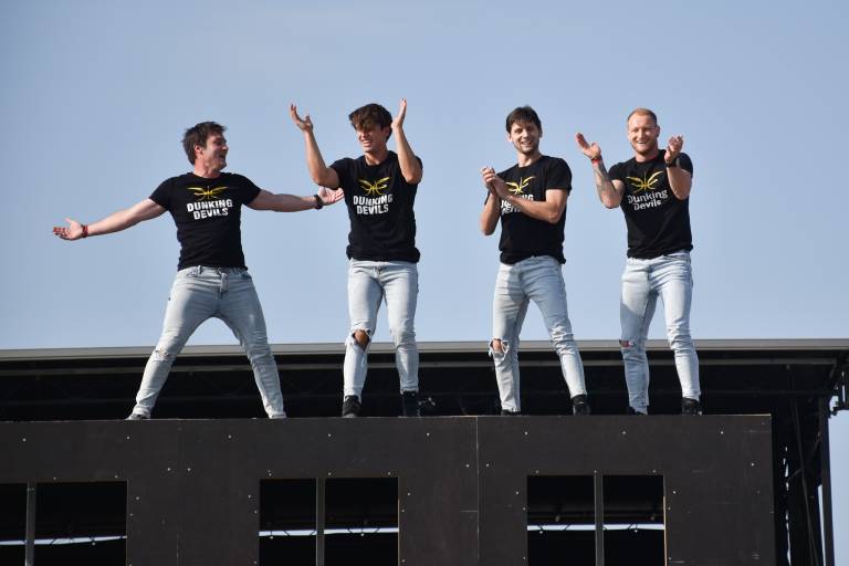 Svetovno znani akrobatski košarkarji Dunking Devils so danes zvečer navdušili s spektakularnimi akrobacijami, ki so gledalce pustile odprtih ust.