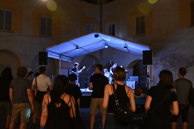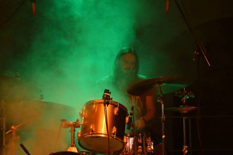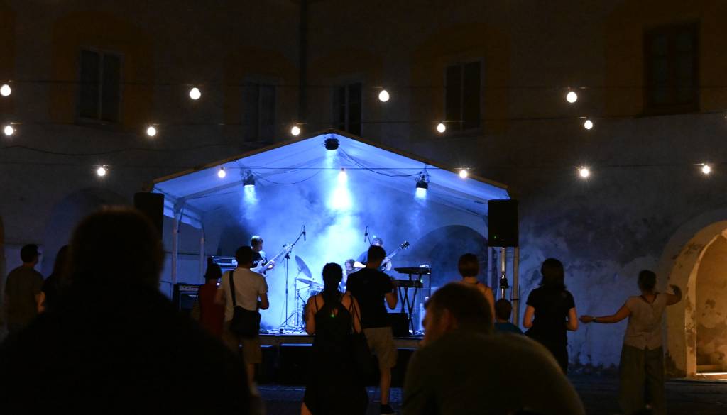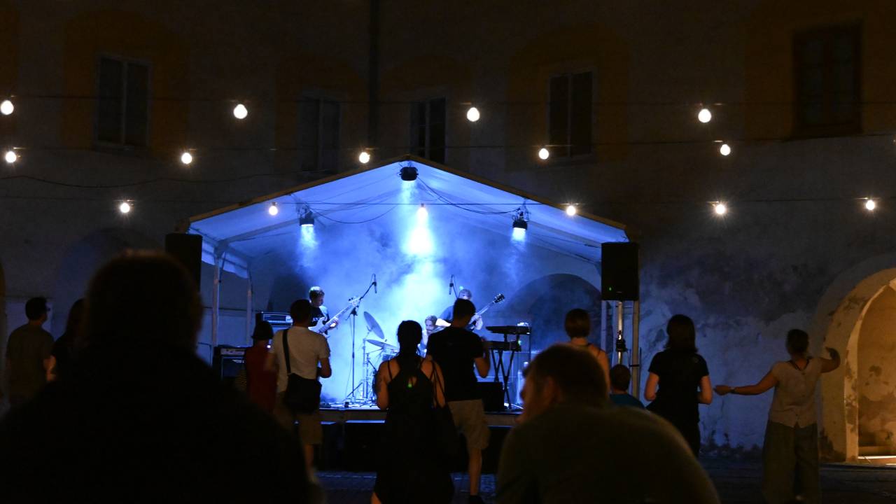 Glasbeni večer se je začel z nastopom hrvaške skupine Zagušljivi dim. Njihov edinstveni glasbeni izraz, ki raziskuje čudežno, neznano in navidezno znano, je ustvaril hipnotično atmosfero, ki je občinstvo popeljala v svet mantričnih ritmov in globokih bas linij.
