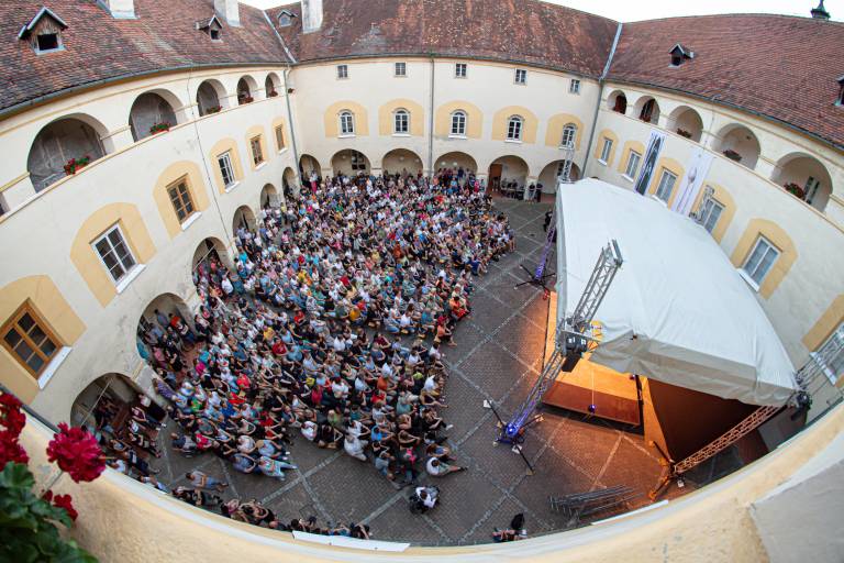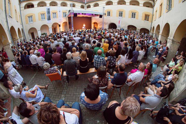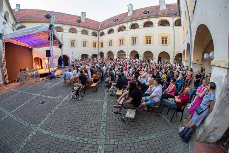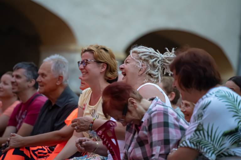 Na grajskem dvorišču v Murski Soboti je sinoči zabaval komik Tadej Toš, ki je nasmejal številne obiskovalce.