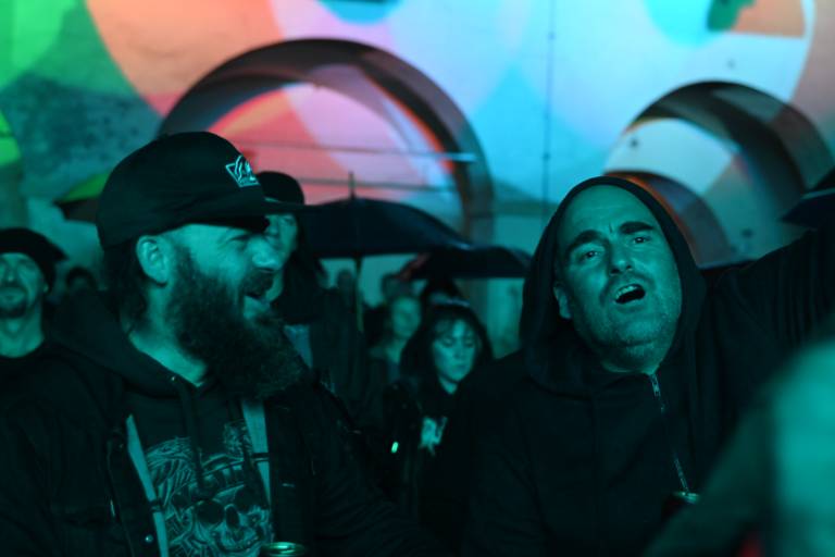 Že z uvodnimi akordi pesmi 'Depresija' so postavili občinstvo na noge, sledile pa so klasike kot 'Lep dan za smrt' in 'Ritem človeštva', ki so odmevale po celotnem prizorišču.