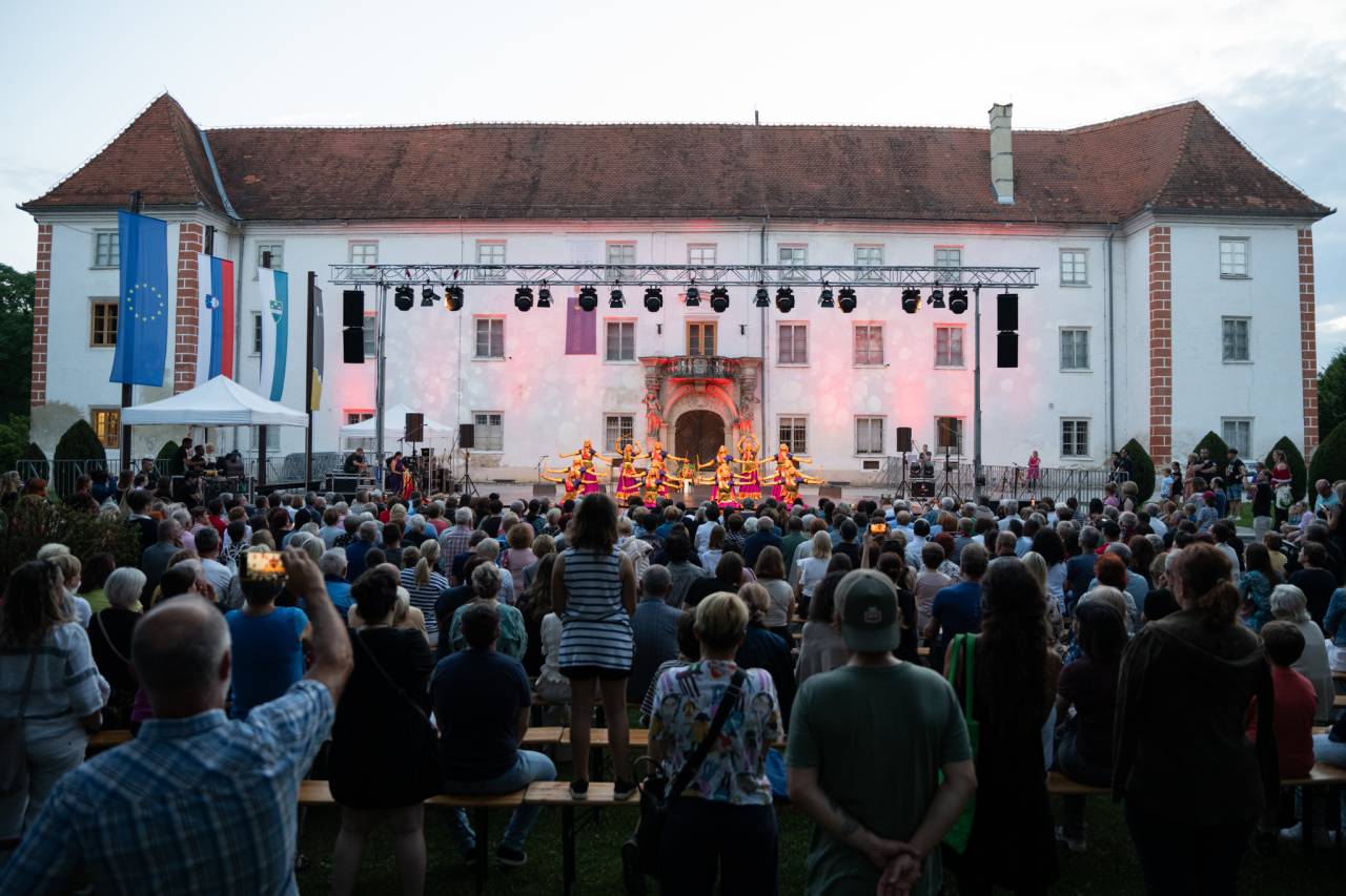 Na grajski ploščadi so v večernih urah nastopili folkloristi Kalanjay Dance Academy iz Indije in Centro Folklórico Atenay Batista iz Paname.
