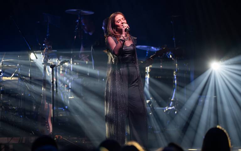 Slovenska pevka Nina Pušlar je s svojim koncertom v Ekonomski šoli Murska Sobota proslavila 20 let glasbene kariere in navdušila zvesto občinstvo.