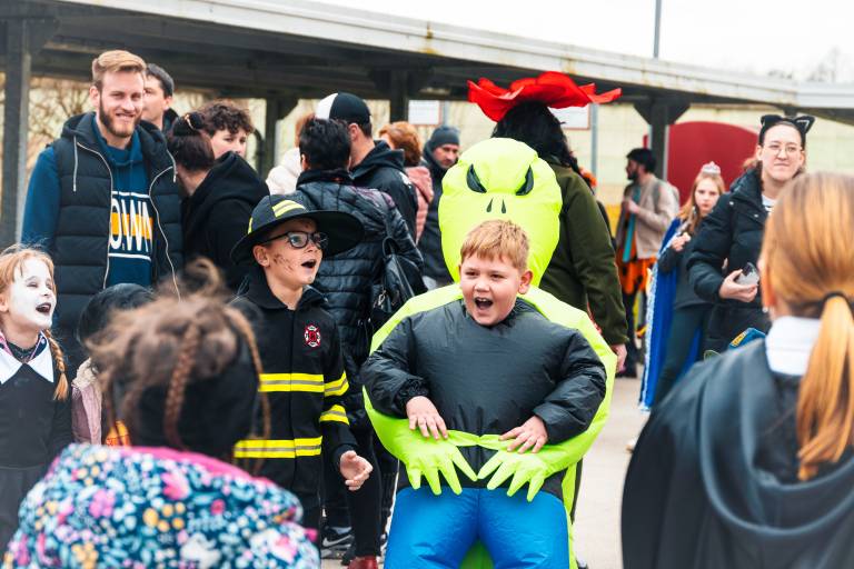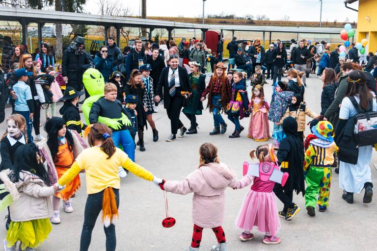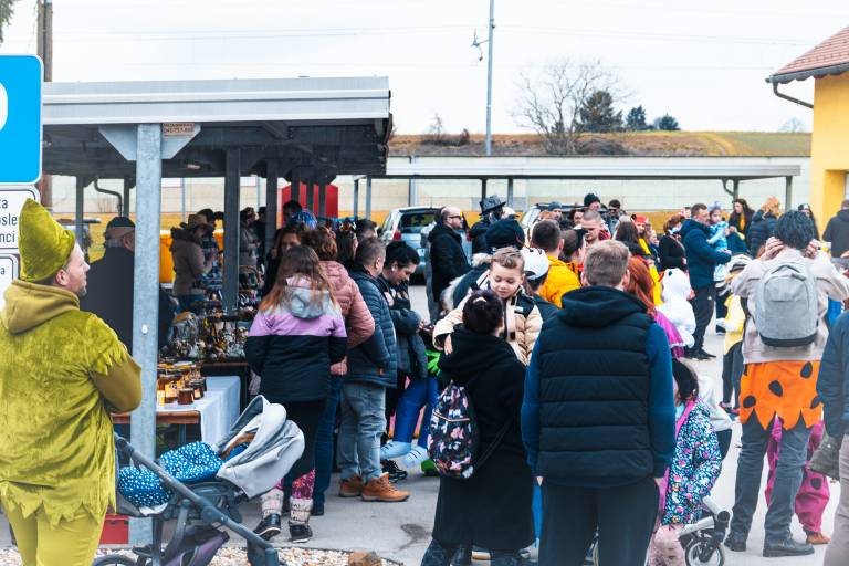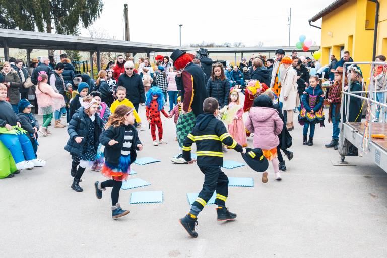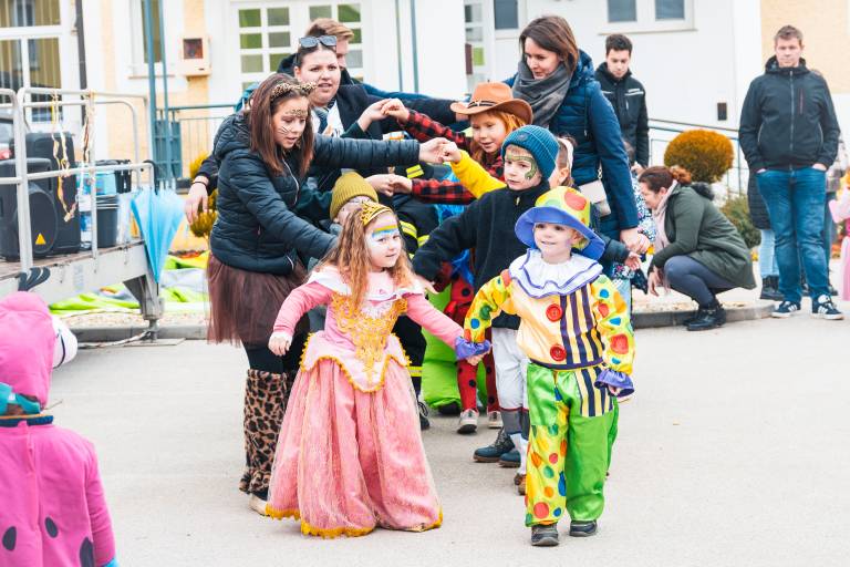 Na dvorišču občinske zgradbe v Puconcih je v soboto potekalo živahno pustno rajanje, ki je privabilo številne otroke in odrasle.