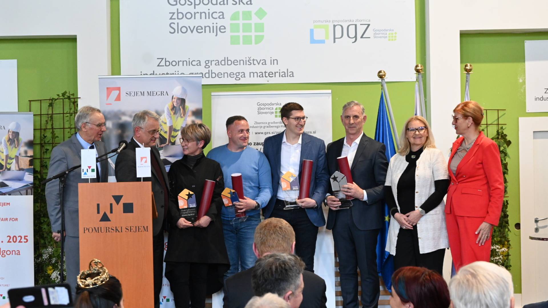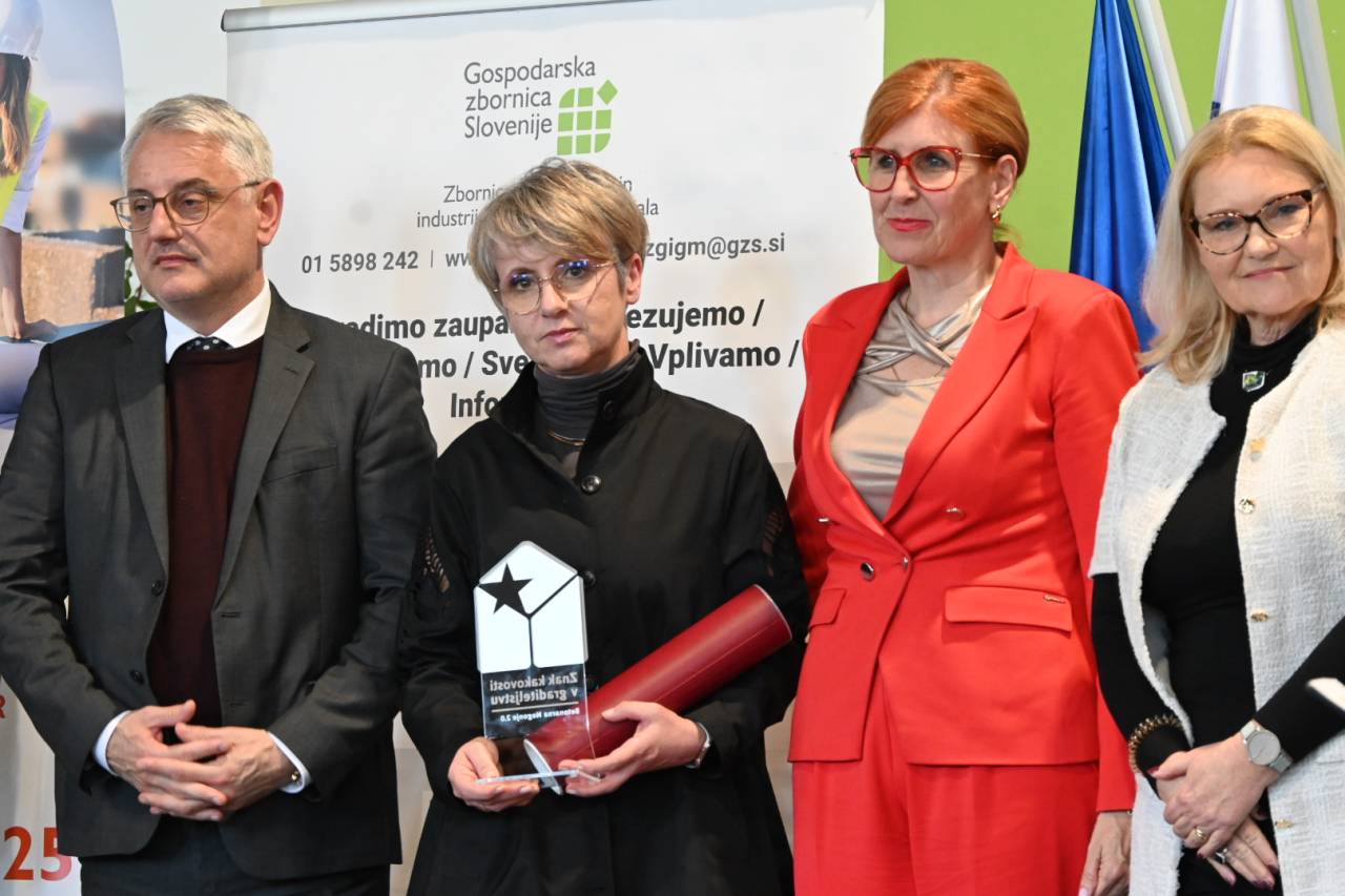 Podeljena so bila priznanja znak kakovosti v graditeljstvu 2025, ki so jih prejela podjetja GIC Gradnje, AJM, MIK in Aledra.
