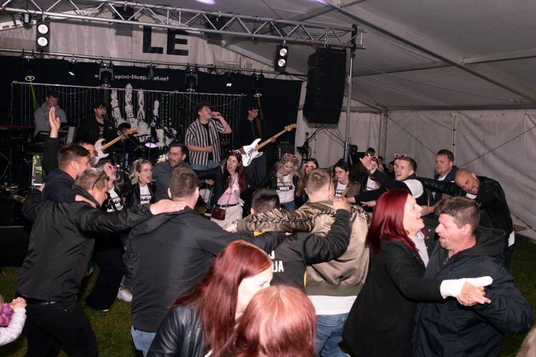 Večer se je zaključil v sproščenem vzdušju ob zabavi z glasbenima skupinama STOP in Blue Planet, ki sta poskrbeli za veselo nadaljevanje druženja gasilk in gasilcev.