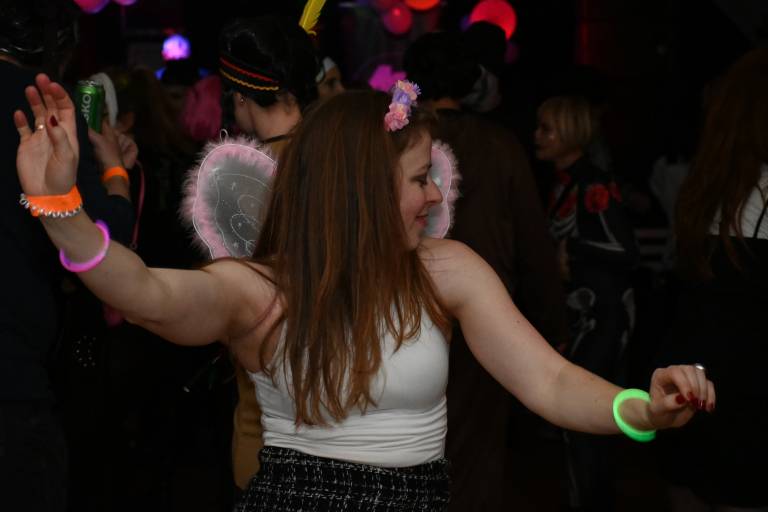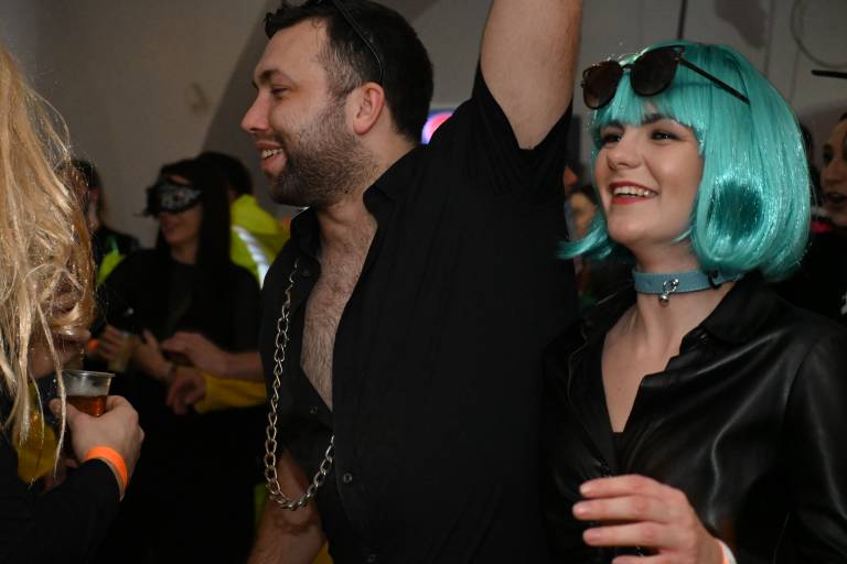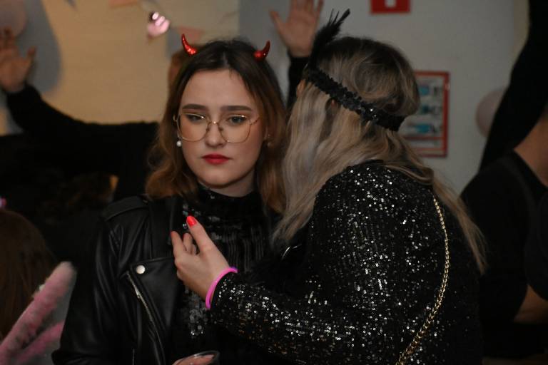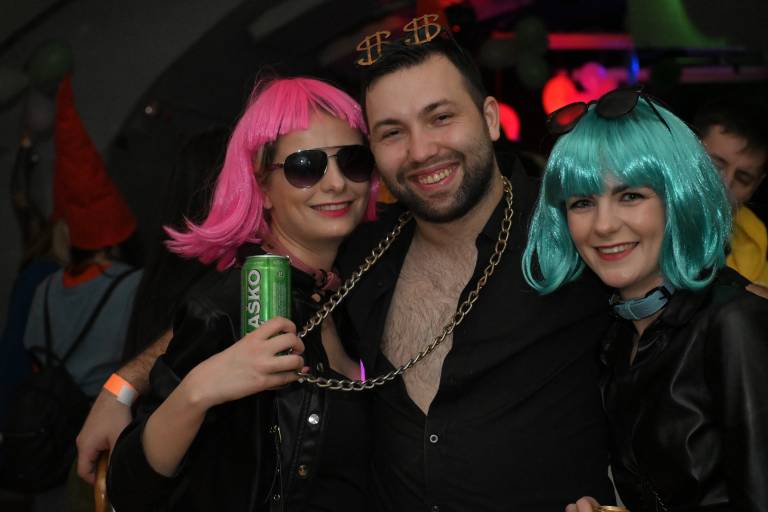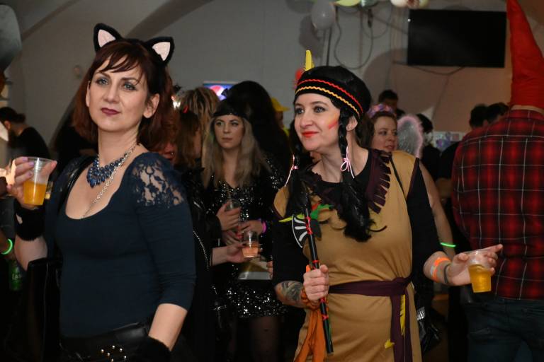 V klubskem prostoru MIKK se je včeraj zvečer zbrala pisana druščina maskiranih obiskovalcev, ki so si želeli preživeti nepozaben pustni večer v družbi prijateljev in glasbe.