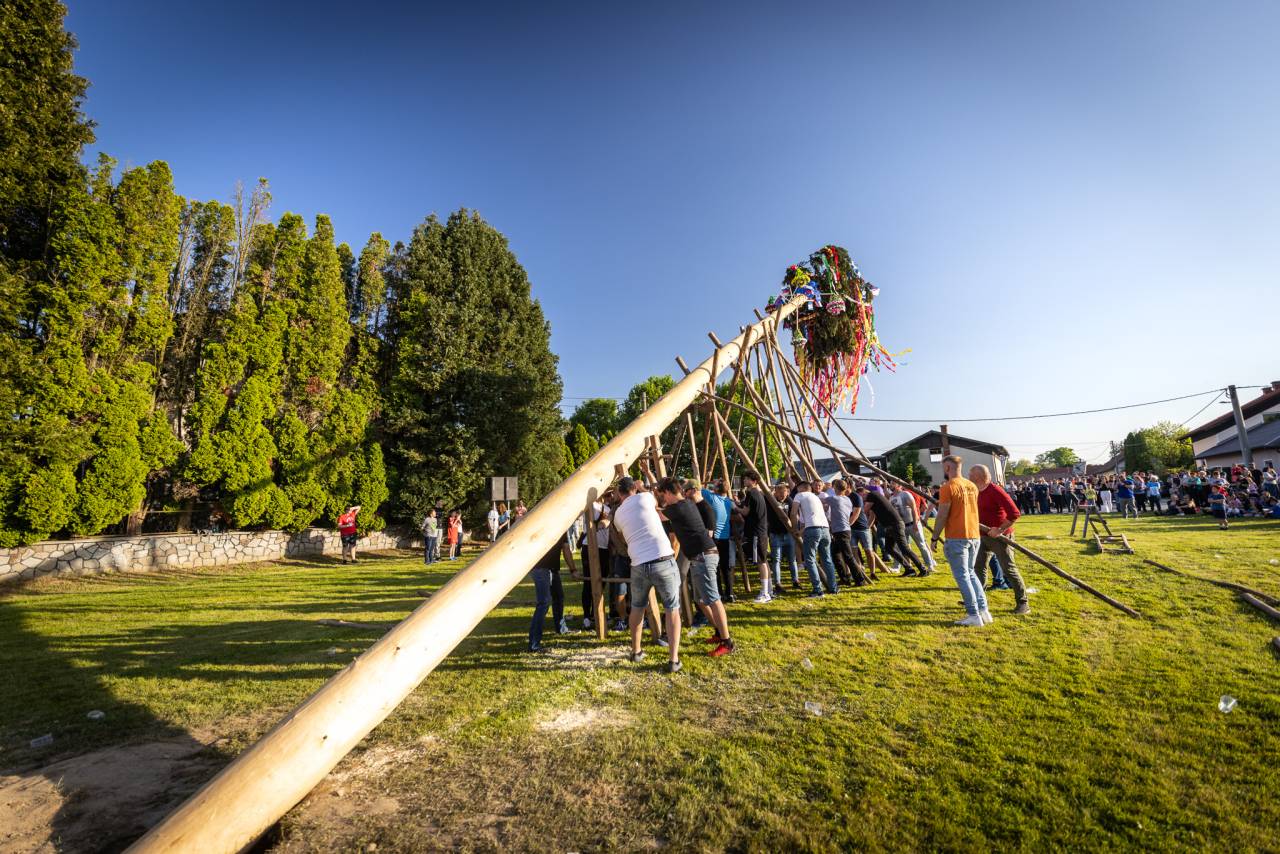 V Gančanih so danes tradicionalno postavili Gančki majoš in prižgali kres.