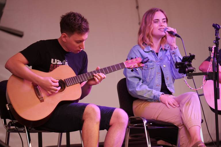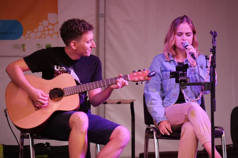Glasbeni trio Kat & the Dedos, ki preigrava znane skladbe, angleške, in prekmurske glasbene scene je zabaval obiskovalce na Poletju v Moravskih Toplicah.