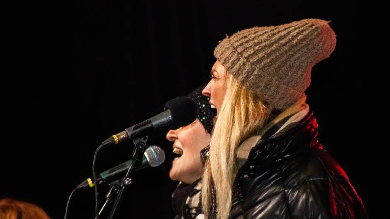 Občinstvo je napolnilo prizorišče in spremljalo nastop zasedbe, ki je s prepoznavnimi uspešnicami ustvarila sproščeno vzdušje.