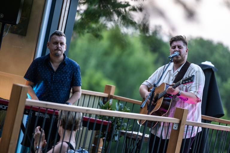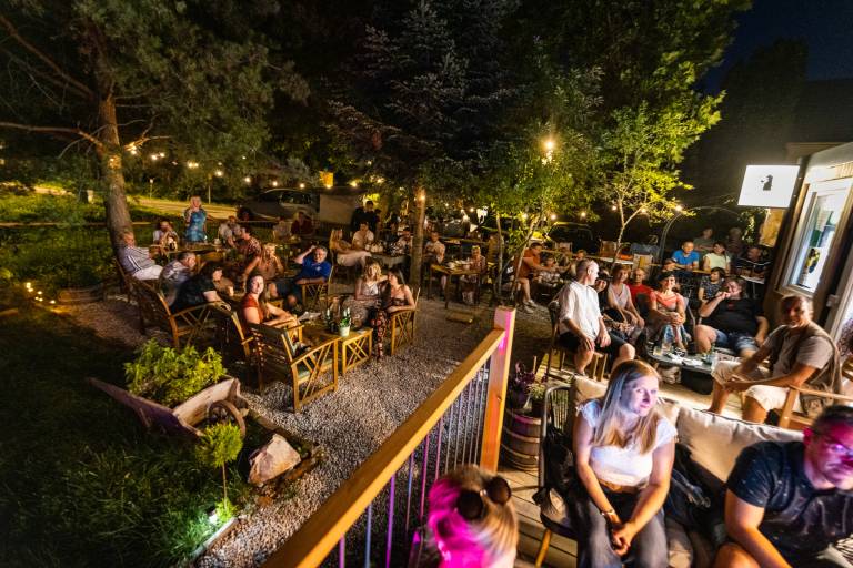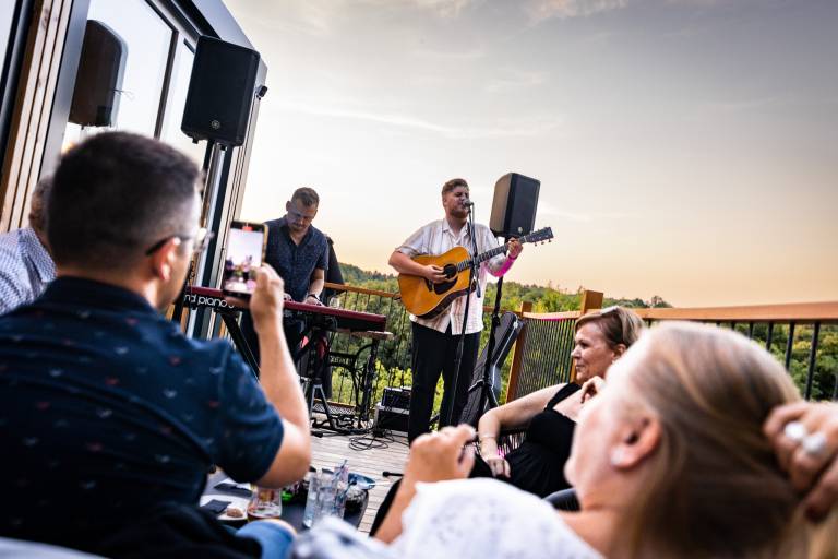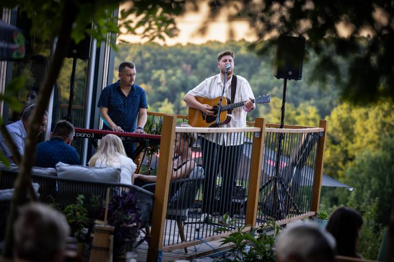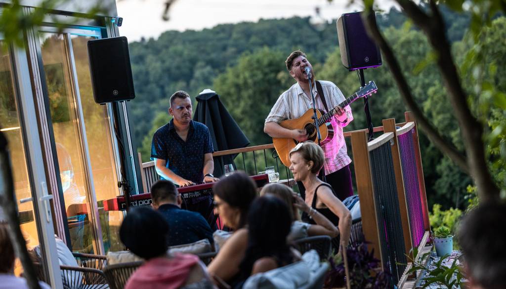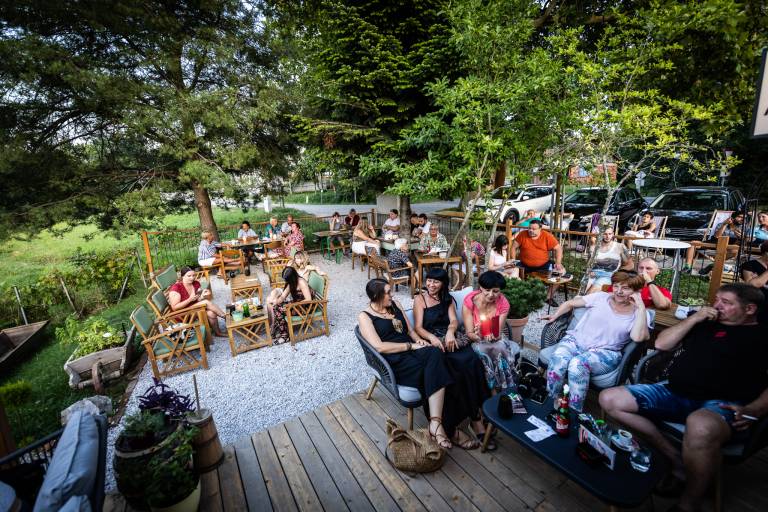 V Kavarni Platana pri Gradu na Goričkem je potekala idilična prireditev, kjer so obiskovalci uživali ob prekmurskem ginu in koncertu Žana Vidca.