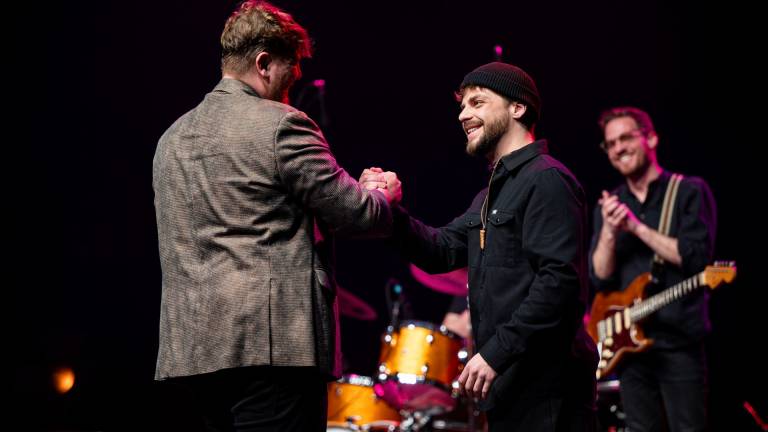 Poseben trenutek večera je bil tudi nastop gosta. Na odru Gledališča Park se je Žanu Videcu pridružil Leopold I., ki je s svojim nastopom dodatno popestril glasbeni večer.