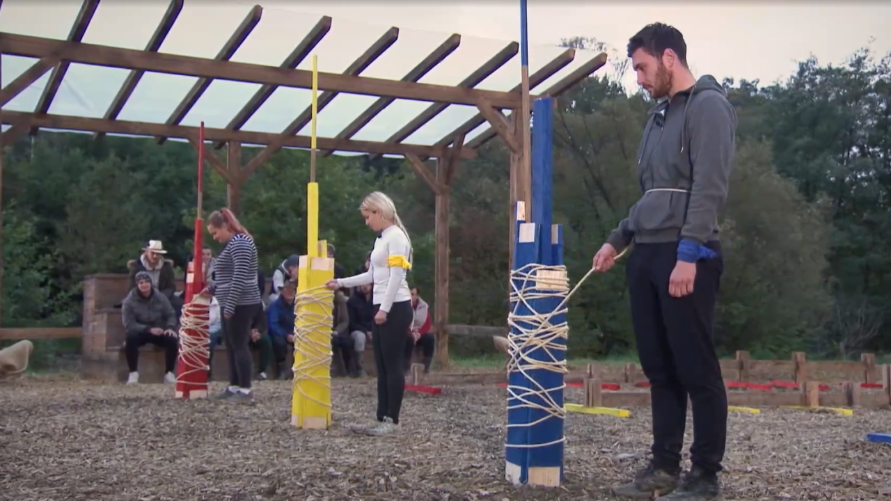 Že skoraj na samem začetku je obupala Mariborčanka Nina Radi, ki je neuspešno odvijala vrv, tako, da sta se med sabo udarila Karin in Tilen.