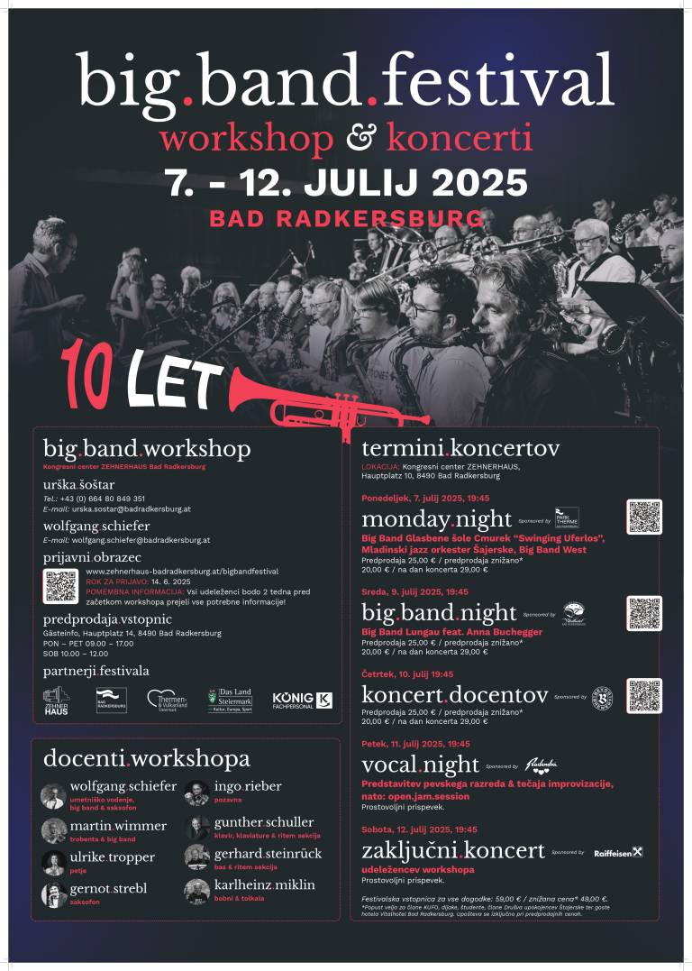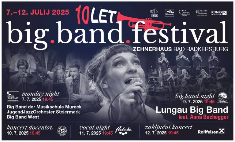 Ljubitelji dobre galsbe, prisrčno vabljeni na 10. big.band.festival v avstrijsko Radgono. Letos festival praznuje prav poseben jubilej, ki si zasluži posebno pozornost!