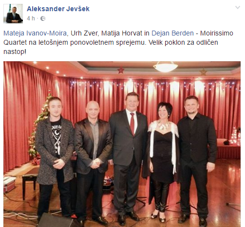 Župan Mestne občine Murska Sobota Aleksander Jevšek je bil navdušen nad nastopom Moirissimo Quarteta na letošnjem ponovoletnem sprejemu.