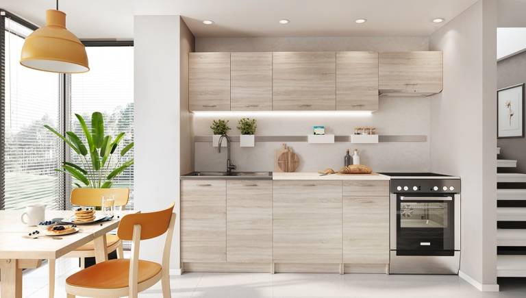 Kako? Ekipa tega večkrat nagrajenega salona pohištva pove, da gre za relativno majhne kuhinje (dolžine do 260 centimetrov), ki ne zahtevajo večjega števila elementov. Na tak način lahko za nižjo ceno kupec še vedno dobi kvalitetno pohištvo.