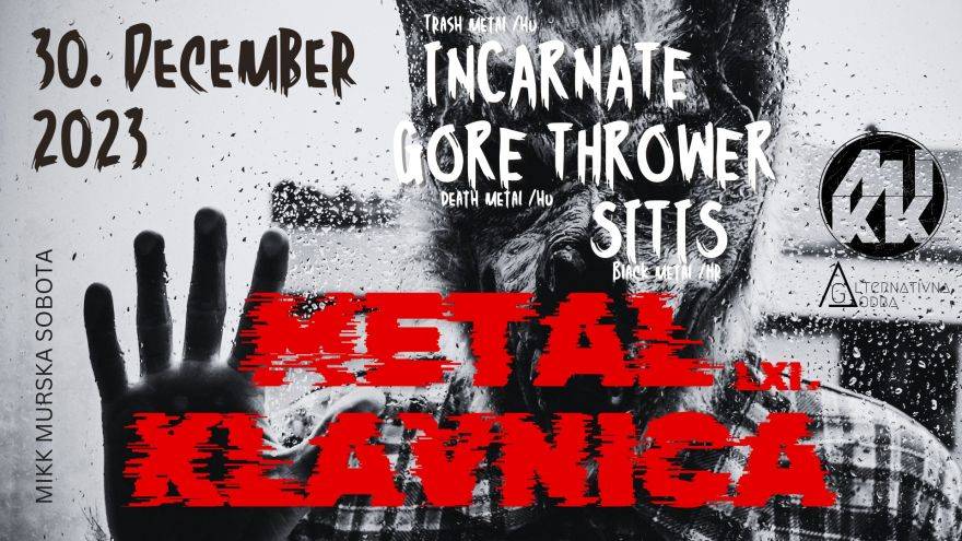 V MIKK Murska Sobota pa ob 21. uri prihaja nova Metal klavnica LXI. Tokrat bodo nastopile metal in hard rock skupine SitiS, Gore Thrower in Incarnate.
