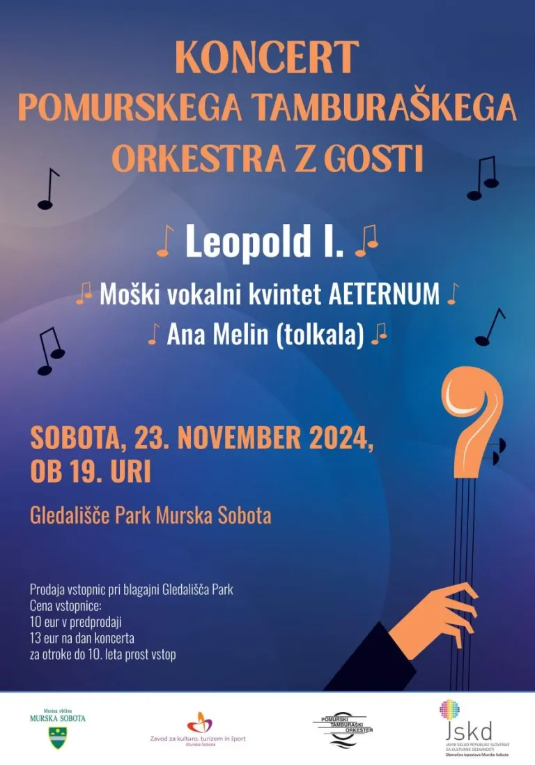 Večer bo glasbeno obarvan s koncertom Pomurskega tamburaškega orkestra v Gledališču Park Murska Sobota ob 19. uri.