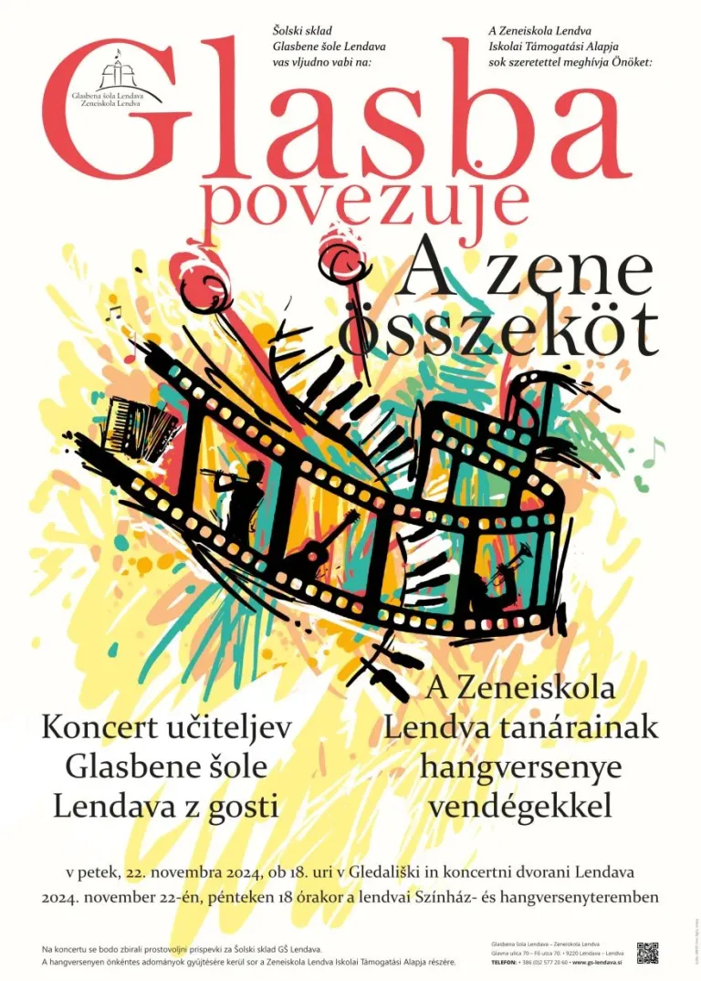 Glasbeni navdušenci se bodo ob 18. uri lahko prepustili čarom koncerta Glasba povezuje v Gledališki in koncertni dvorani Lendava, kjer bodo nastopali učitelji Glasbene šole Lendava z gosti.