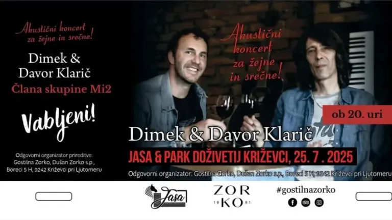 Ljubitelji akustične glasbe lahko isti večer obiščejo Gostilno Zorko Dušan, kjer bosta ob 20. uri nastopila Dimek in Davor iz skupine MI2.