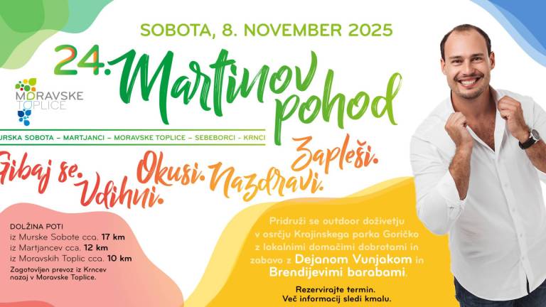 Ob isti uri bo v Martjancih 24. Martinov pohod, ki se bo nadaljeval čez Moravske Toplice vse do Sebeborcev in Krncev. Ob 10. uri se bo pohod nadaljeval s kulinaričnim in glasbenim programom, med drugim z nastopom Dejana Vunjaka in Brendijevih barab.