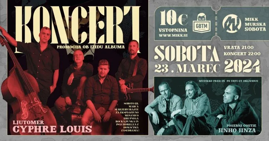 V MIKK Murska Sobota bodo ob 21. uri nastopili Cyphre Louis in posebni gostje Jinho Jinza.