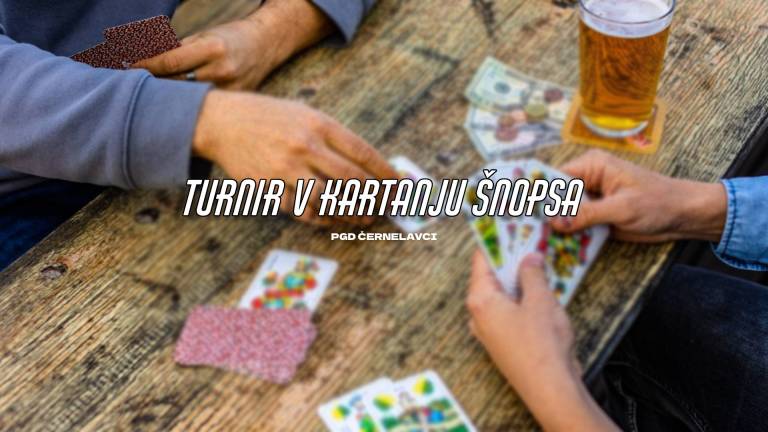 V Vaško-gasilskem domu Černelavci, ob 17. uri organizirajo Turnir v kartanju šnopsa.
