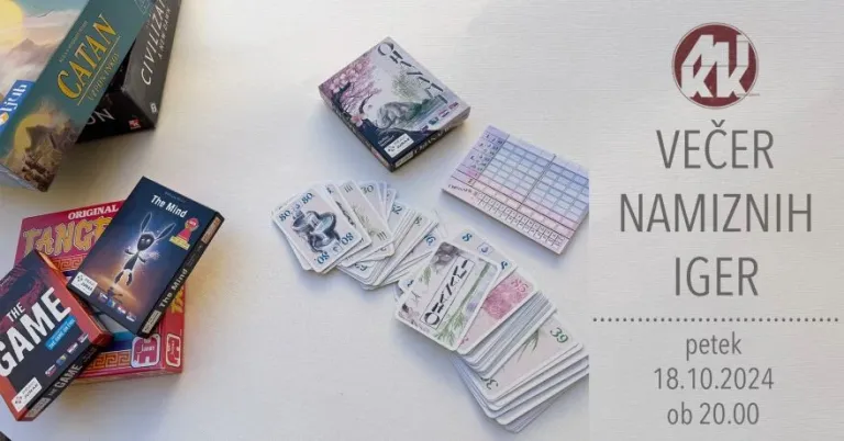 Istočasno se bo v MIKK Murska Sobota odvijal Večer namiznih iger, kjer boste lahko v sproščenem vzdušju igrali različne družabne igre.