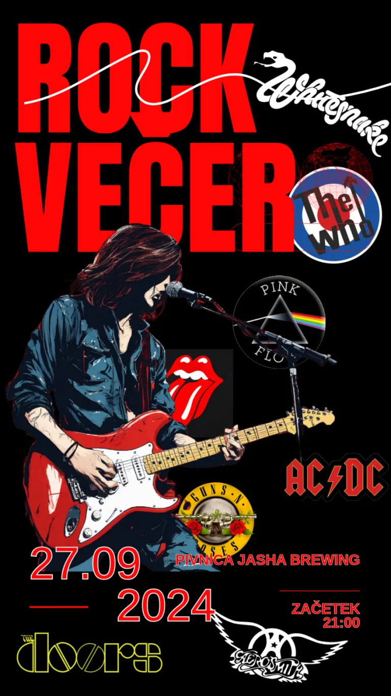 V pivnici Jasha Brewing bo ob 21. uri Rock večer z glasbo AC/DC, Aerosmith, The Who, The Doors in številnimi drugimi legendami rocka.