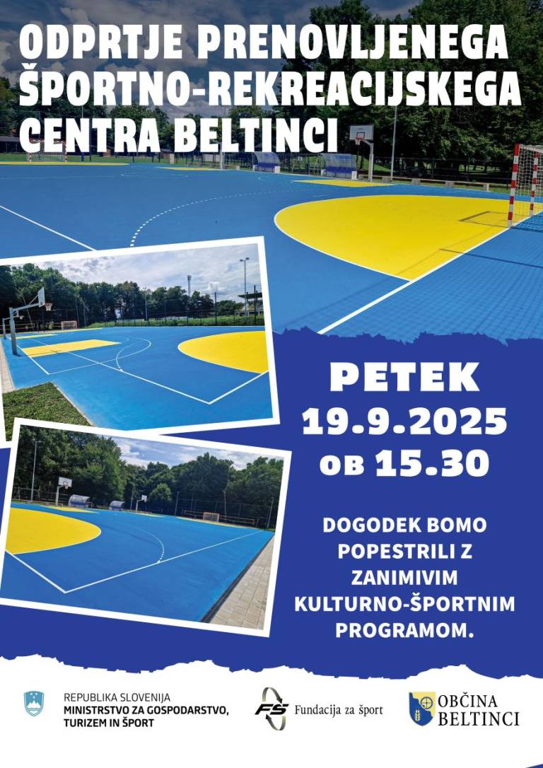 Ob 15.30 bodo v Športno-rekreacijskem centru Beltinci, slavnostno odprli prenovljeni objekt. Ob 16. uri pa bo v Parku 1. slovenskega tabora v Ljutomeru 9. Lotmerški trail tek, ki bo povezal šport, naravo in skupnost.